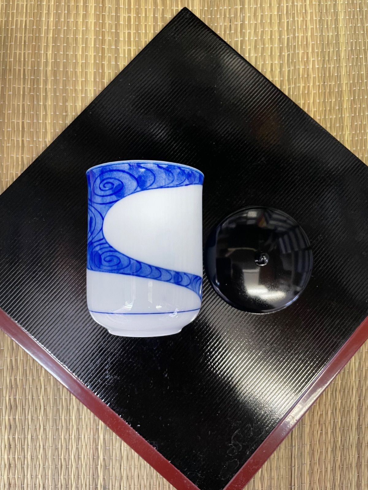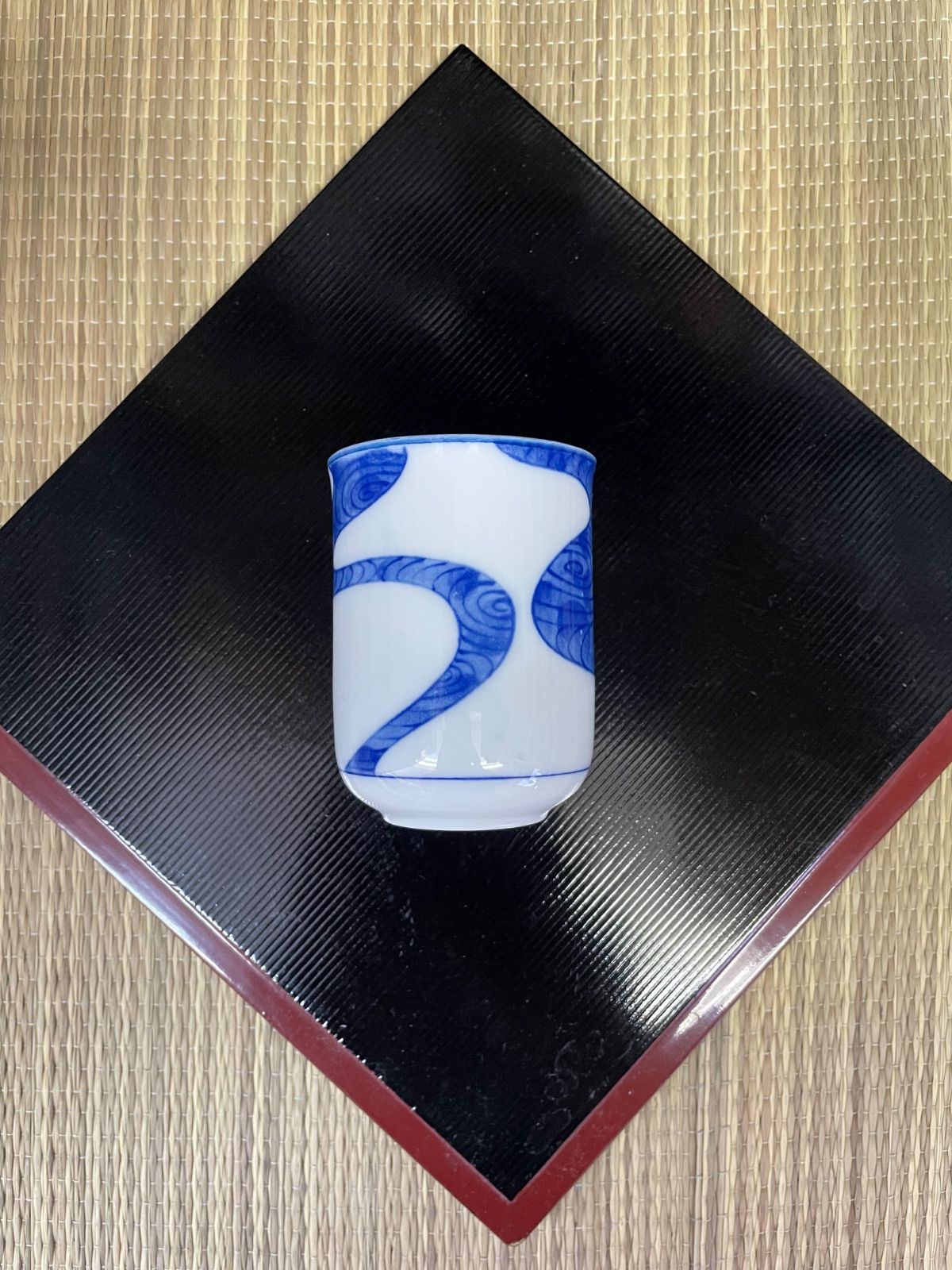 湯呑み 流水観世水 白地に紺の流水柄の中に観世水柄