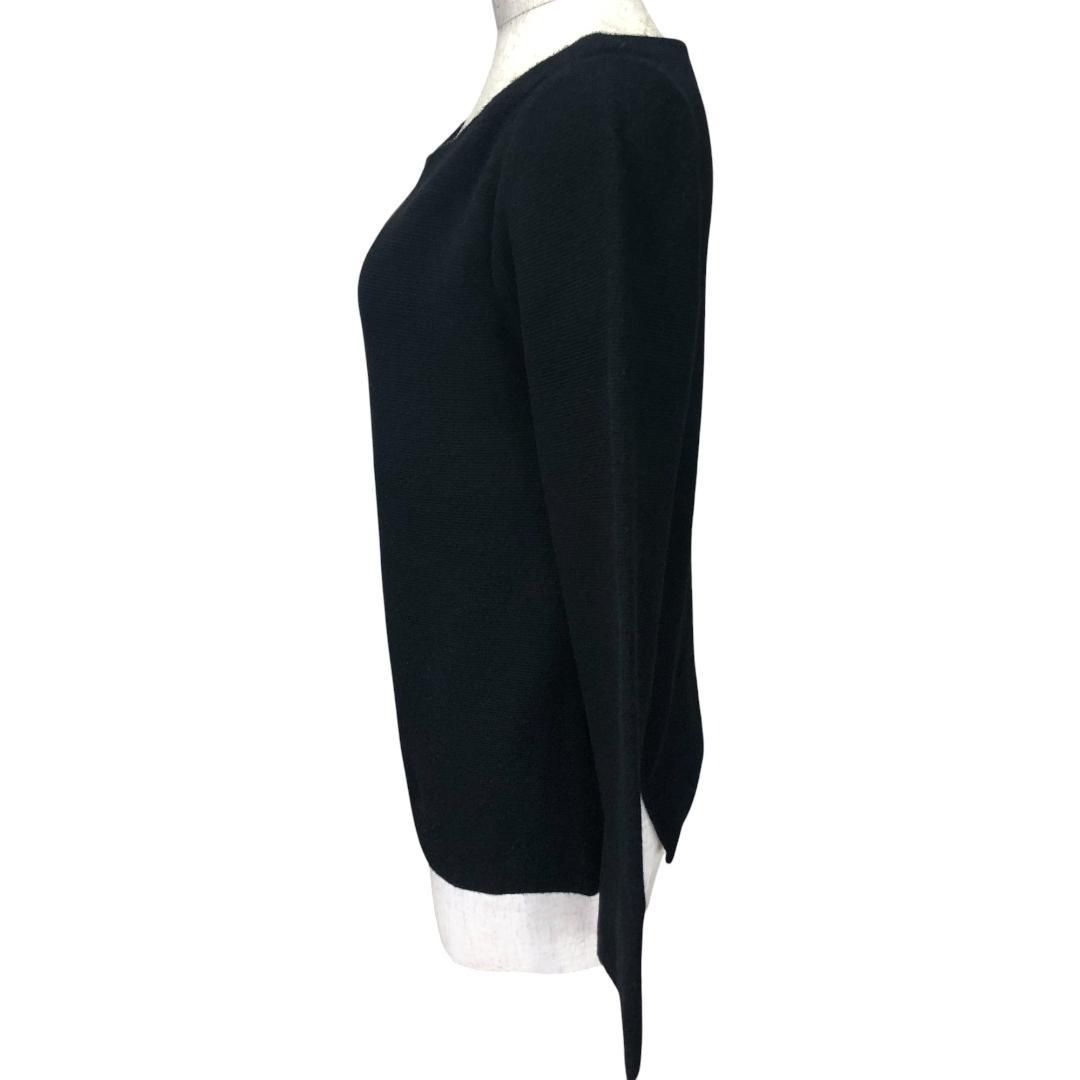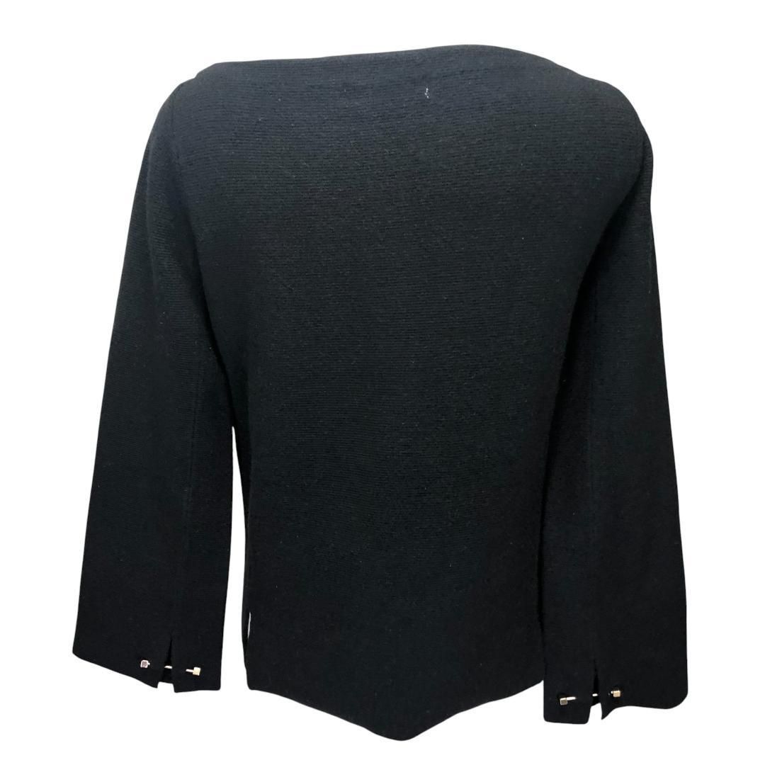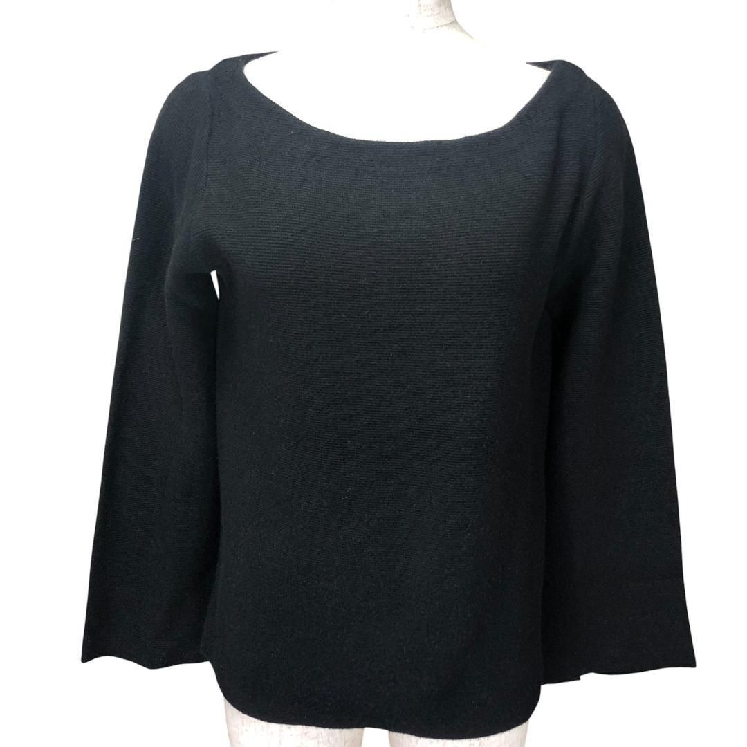 上品なボートネックデザイン・暖かいブラックのニットです。袖口は15cmと広がったデザインで、7cmスリットがあり、銀色・長方形の装飾金具が付いています。両サイド裾には8cmスリットがあります。どんなボトムスにも合わせやすく、着回し力抜群です。