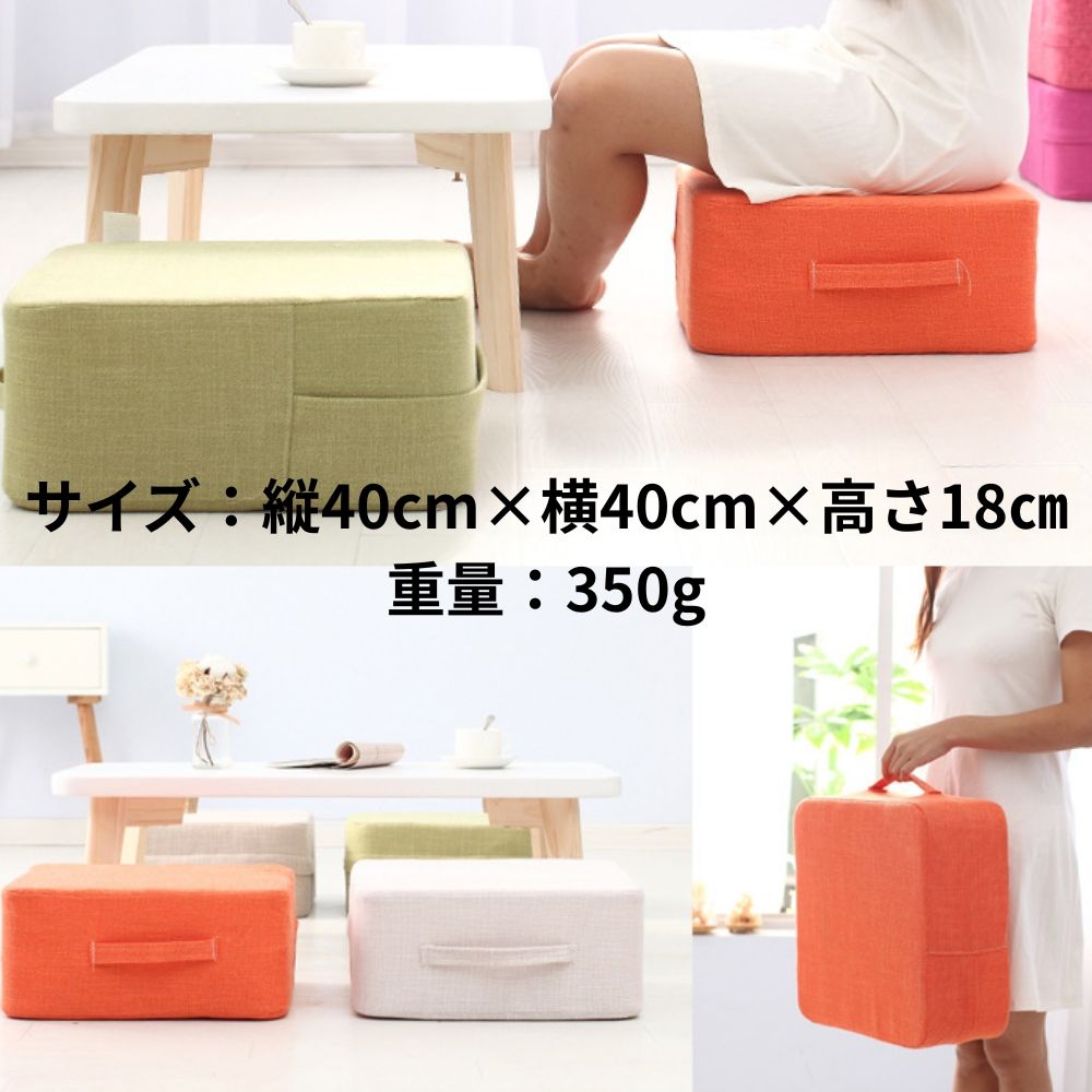 クッション スツール 座布団 低座椅子 持ち手付き 四角 軽量 ローテーブル用 ライトグレー