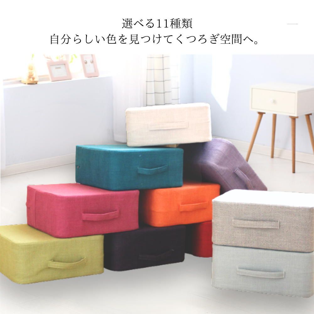 本商品は、ローテーブルやこたつで使いやすい四角形のクッションスツールです。縦40cm 横40cm 高さ18cmの扱いやすいサイズで、リビングや和室、在宅ワーク、来客用、子ども用など多用途に活躍します。高弾性EPEフォームを採用し、沈み込みを抑えた座り心地を実現。厚手の綿麻混生地による落ち着いたデザインはインテリアに馴染みやすく、長期間使用してもへたりにくい構造です。二重カバー採用で外側カバーのお手入れも簡単。重さ約350gと軽量で、側面の持ち手により容易に持ち運べます。全11色の豊富なカラーから選べるため、好みや部屋の雰囲気に合わせたコーディネートが可能。省スペースでも取り入れやすいコンパクト設計で、床生活を快適にする便利な座面アイテムです。