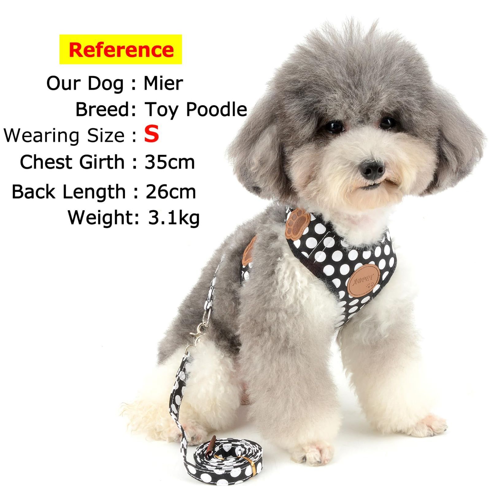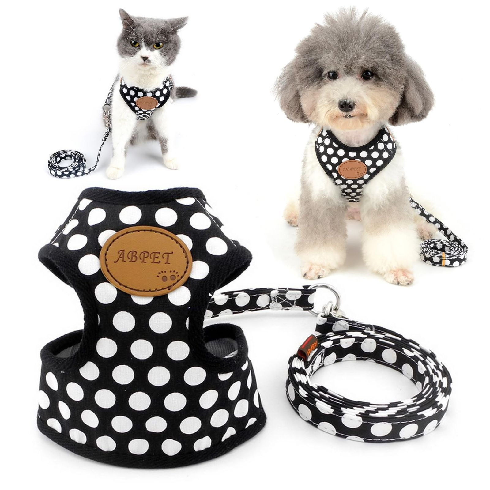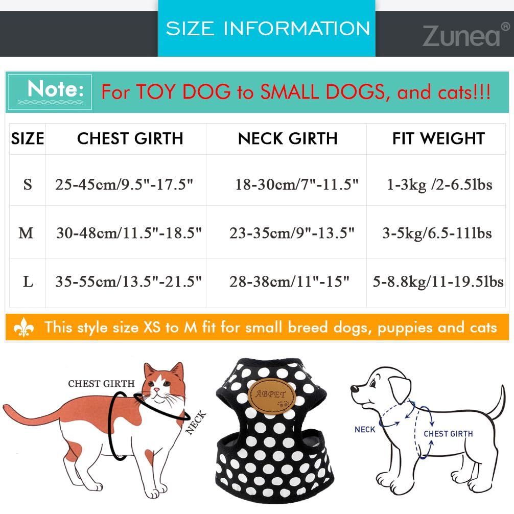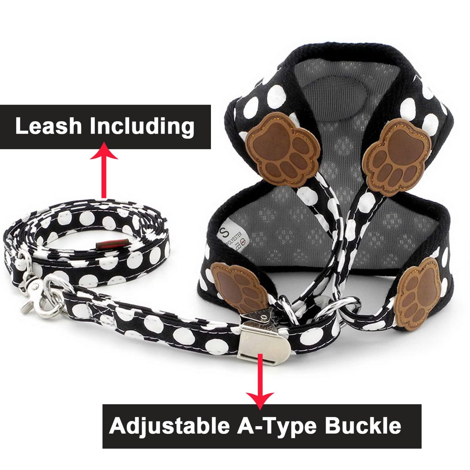 ZUNEA 犬用 ハーネス リード セット 可愛い ドット柄 ソフトメッシュ 胴輪 チワワ用 散歩 ペット用品 ドッグウェア 小型犬用 ブラック M