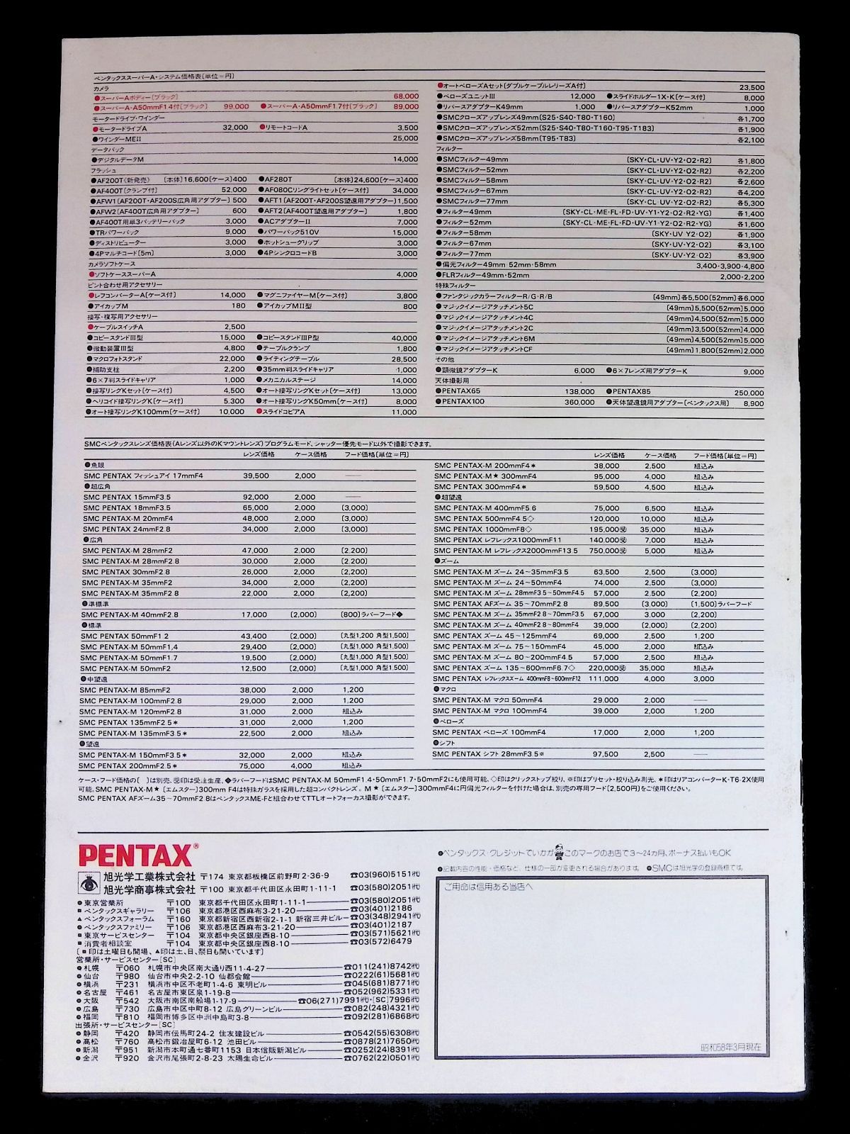 カメラ パンフレット カタログ PENTAX ペンタックス スーパー6モード superA 昭和58年3月 一眼レフ