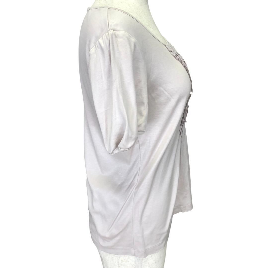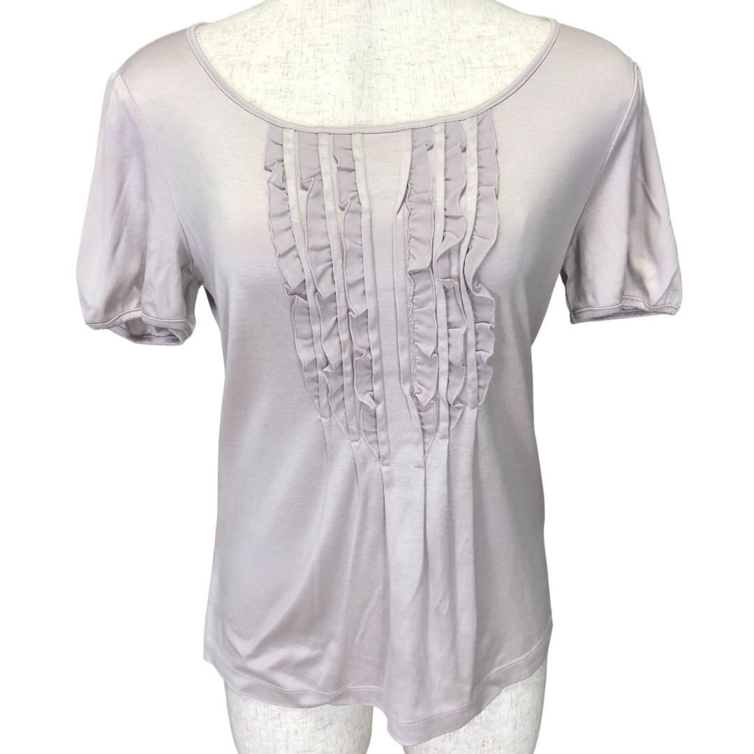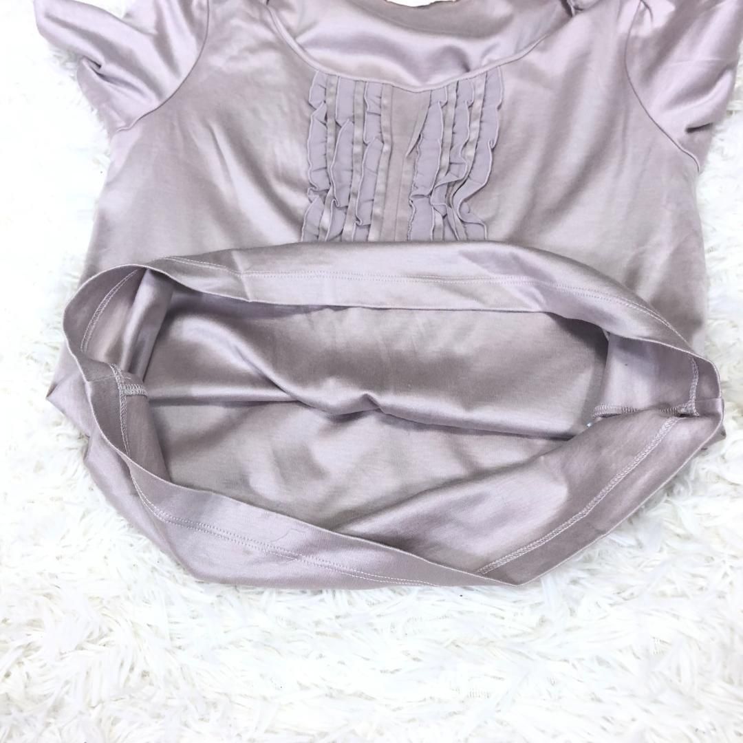 フロント部分に縦にレースのフリルがあしらわれていて、シンプルながらも華やかなカットソーです。オフィススタイルからカジュアルな普段使いまで幅広く活躍します。ストレッチが効いています。