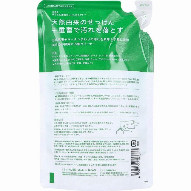 ■商品名:暮らしの重曹せっけん泡スプレー詰替用230mL