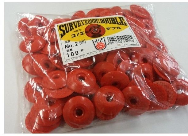 W201 コノエダブル No.2 赤 (100個入) 外径27mm×高さ4mm 【境界明示補助板 測量鋲 ポイント 標示 土地家屋調査】