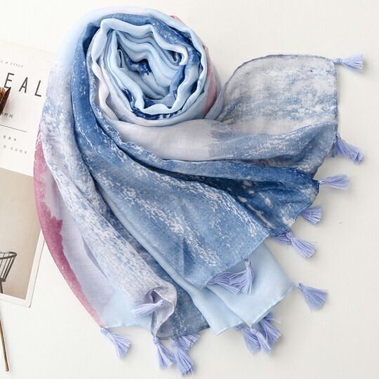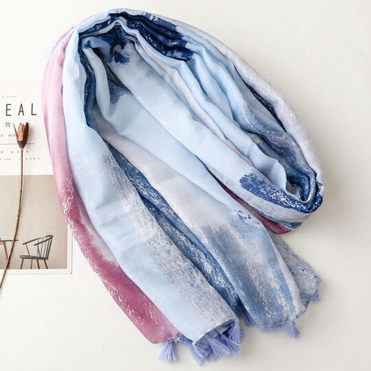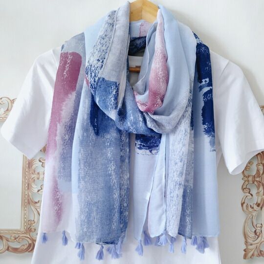 柔らかな水彩画風のピンクとブルー 柔らかな色使いなので、優しい印象で合わせやすい 軽くふんわりとした つけ心地の良さがポイント シャツやブラウスに合わせるだけでお洒落度アップ シンプルなお洋服のポイントになります ma0305a