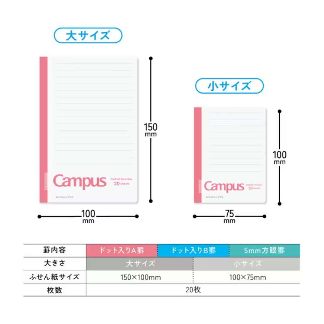 仕様:5mm方眼罫、表紙カバー付き、折りたためるミシン目入り、両面罫線入り