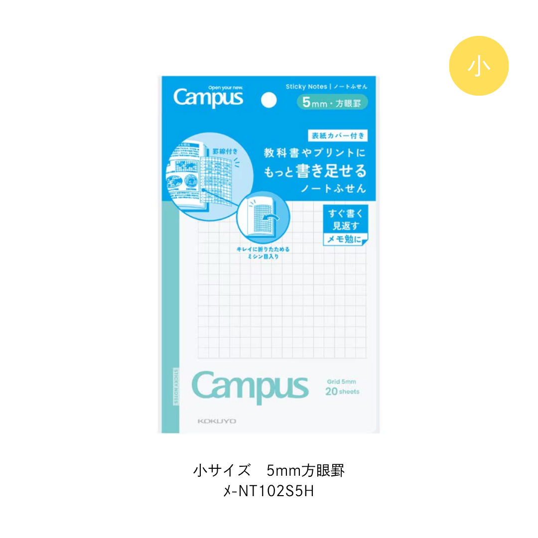 商品名:教科書やプリントにもっと書き足せるノートふせん 小サイズ 5mm方眼罫(表紙カバー付き)