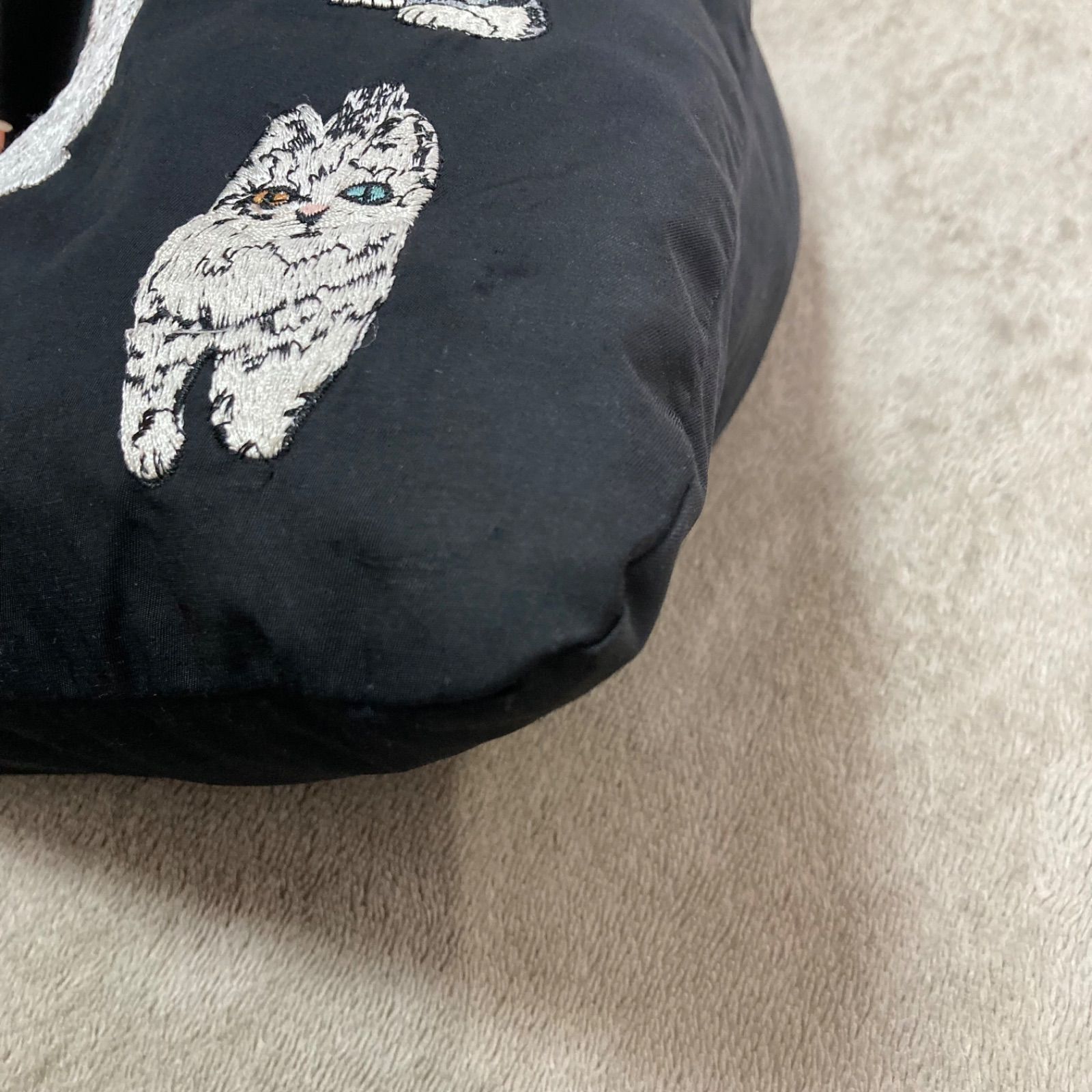 11匹の猫の中に1匹犬が隠れんぼしています。なんとも可愛いバッグです♡A4も入るし、沢山入ります。