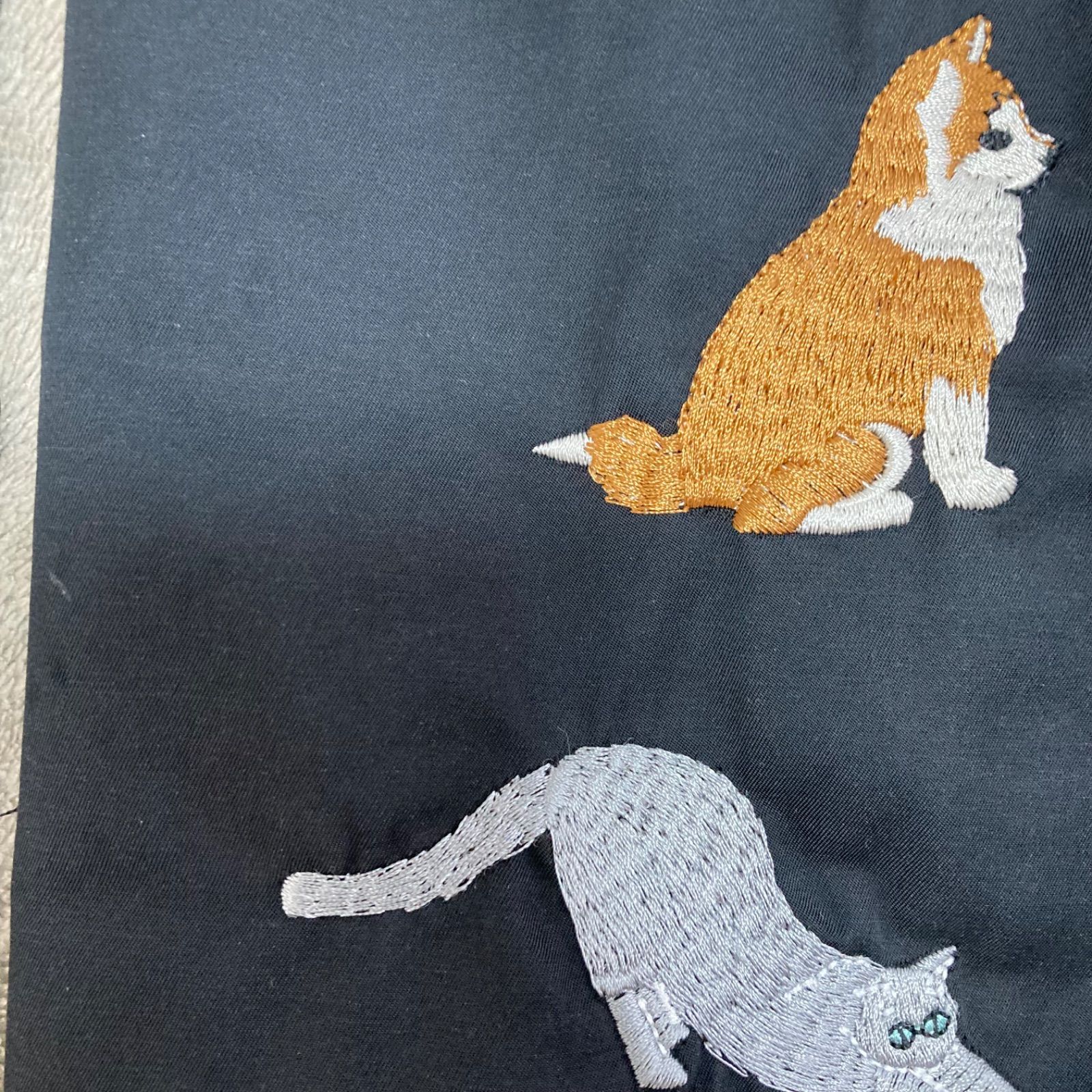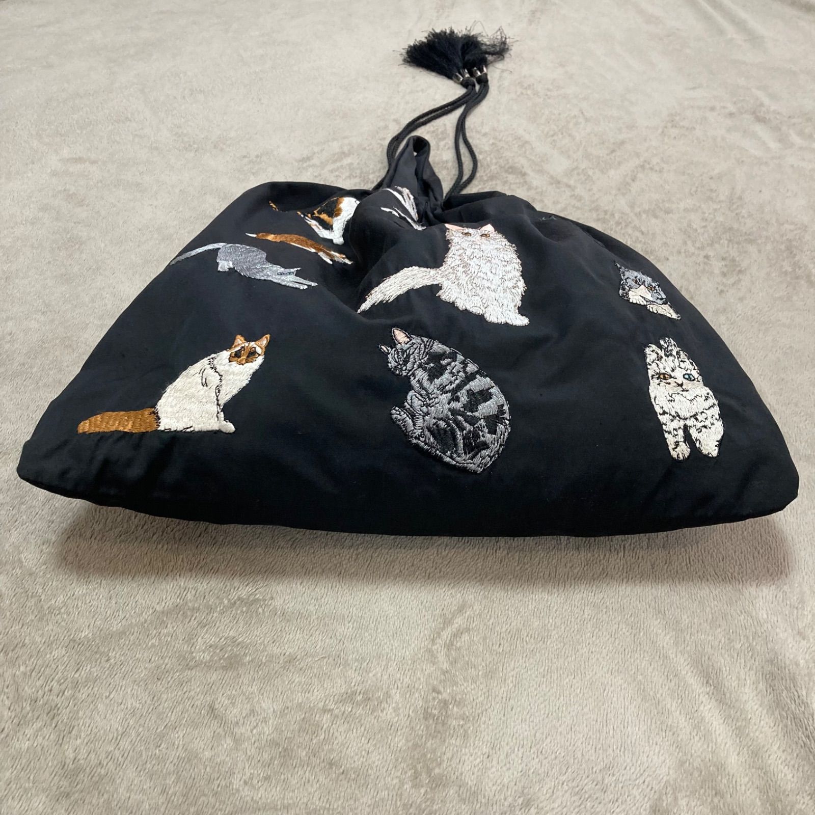 猫刺繍巾着