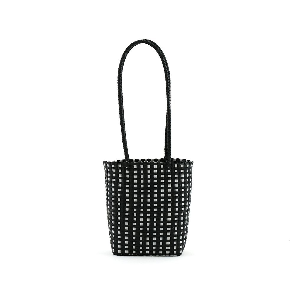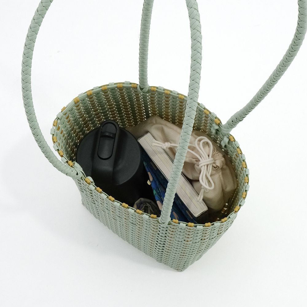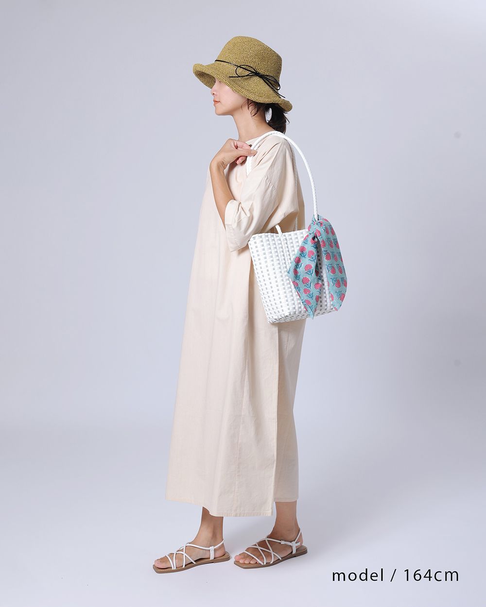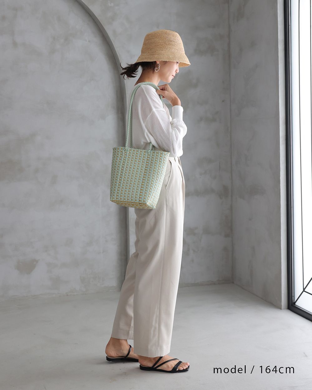 持ち手を長くし、肩にかけて持ちやすく仕上げたメルカドウーヴンバッグ。さらに肩にかけたままバッグの中を見れる絶妙な長さで持ち物を捜す時の置き場所確保やバッグの上げ下げのちょっとしたわずらわしさから解放されます。マイボトルや長財布が入る大きさで水にも強いポリプロピレン素材はレジャーにもおすすめです。