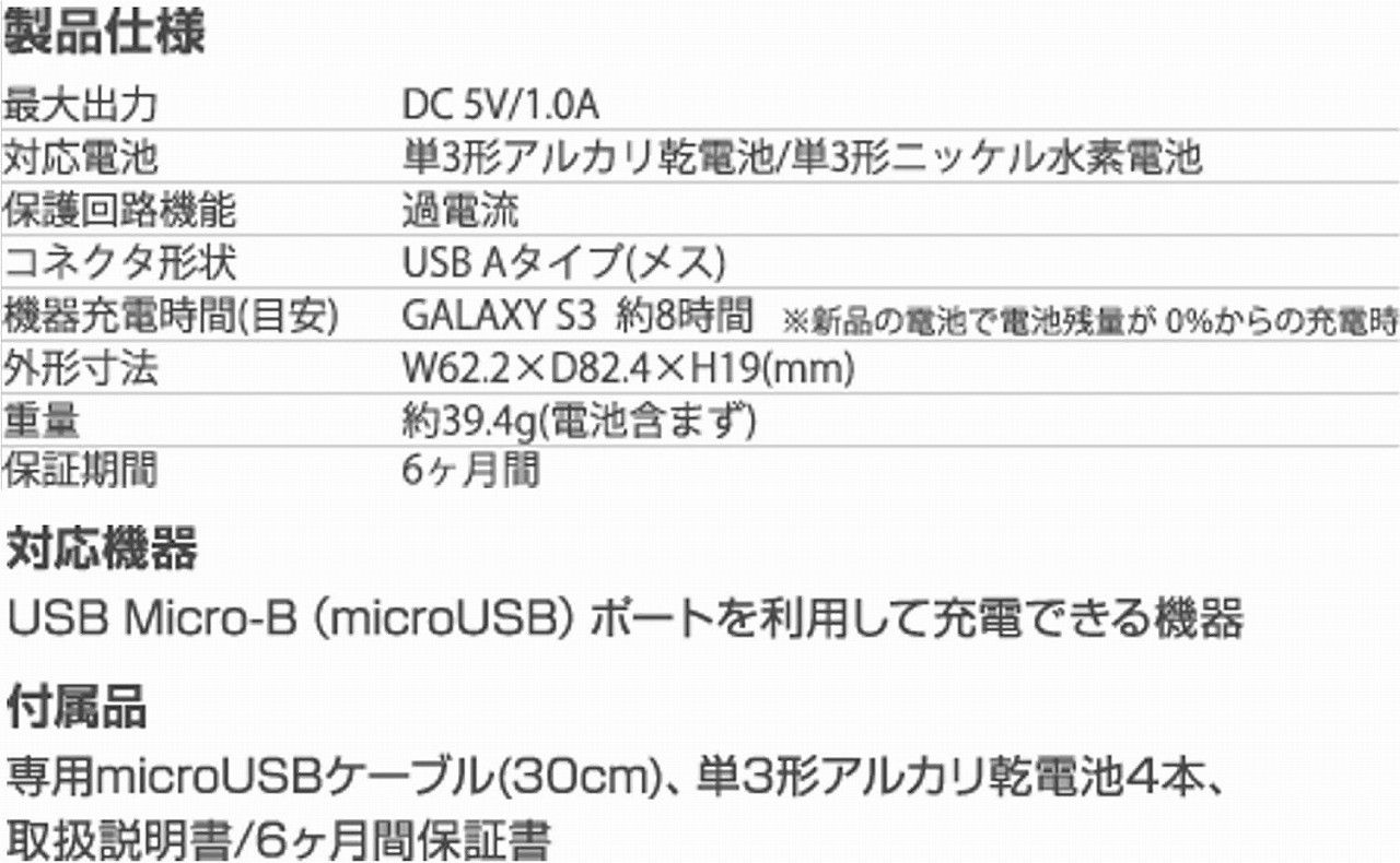 対応電池 : 単3形アルカリ乾電池 / 単3形ニッケル水素電池