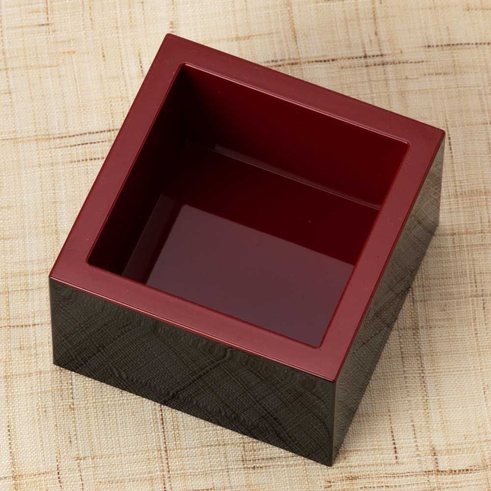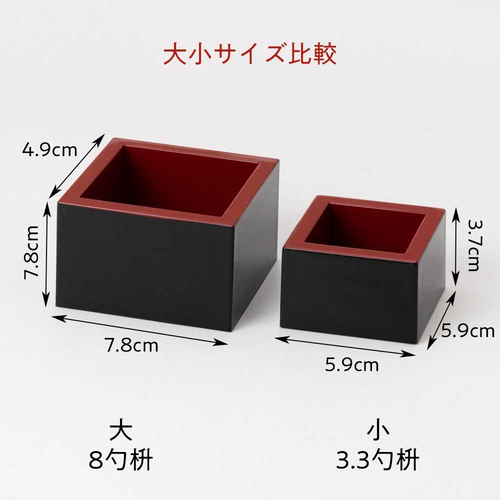 まるで漆塗りの様な、艶やかな黒と朱が鮮やかな塗枡(ぬります)です。