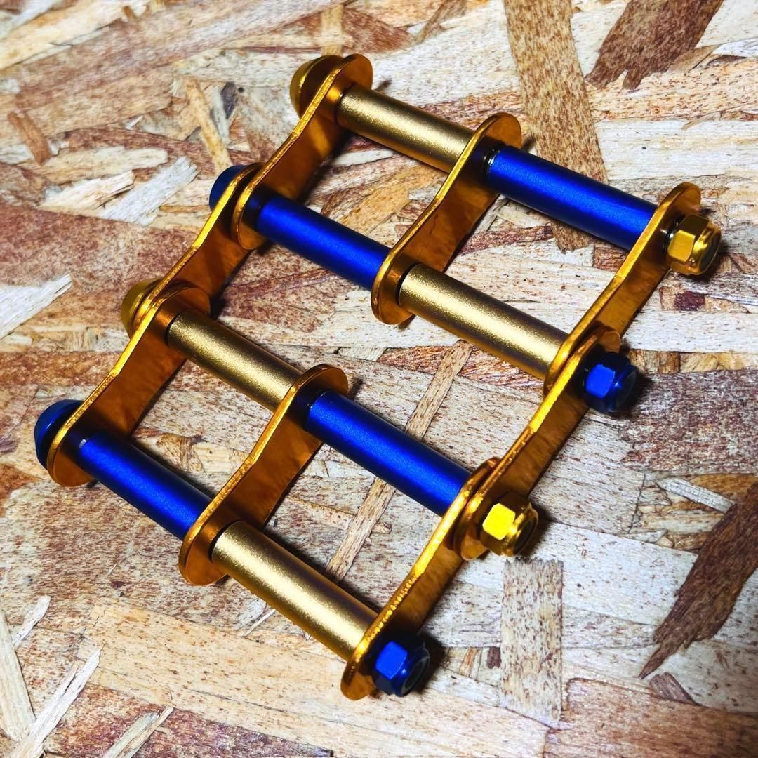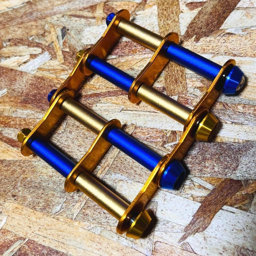 4連チェーン ゴールド×ブルー ニックスベルトループ対応 腰道具 腰道具 腰袋 カスタムチェーン ニックス風 タジマセフ バリスティック ハンマー差し ペンドラホルダー コーデュラ アルミ だるま金具 KNICKS風