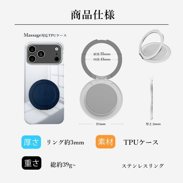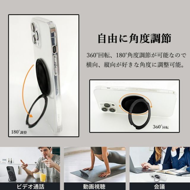 1.リング付き:360度回転機能付きで、スタンドとしても活用可能。