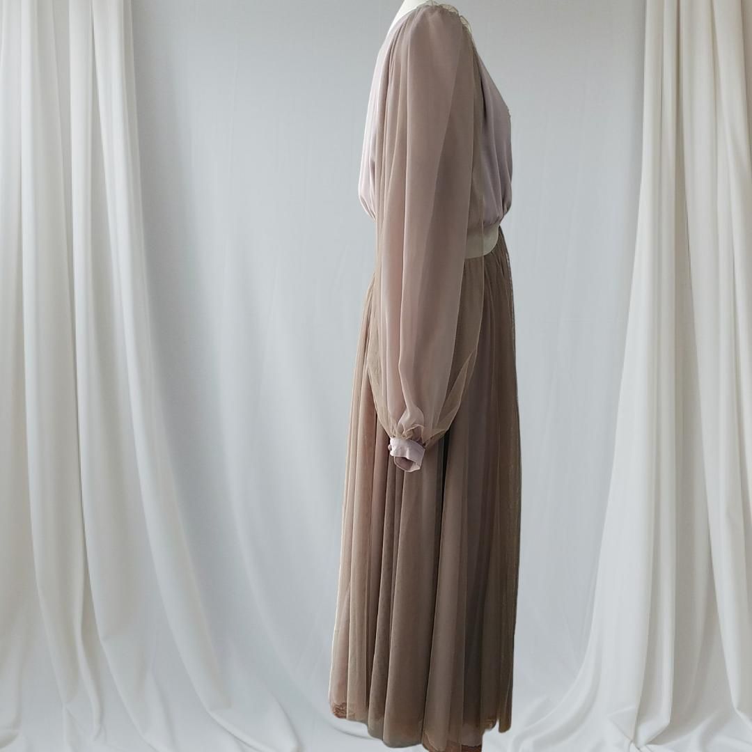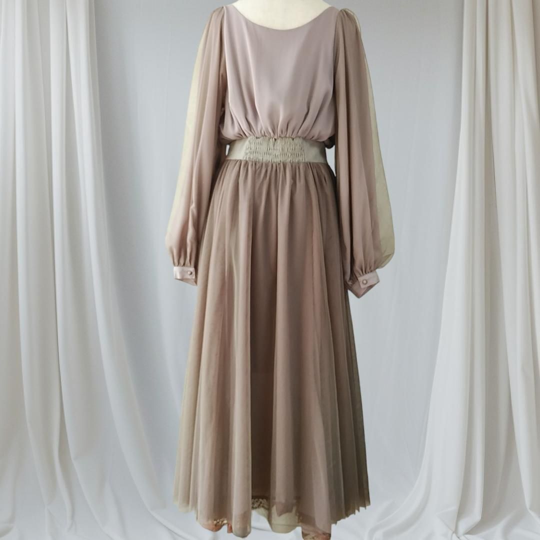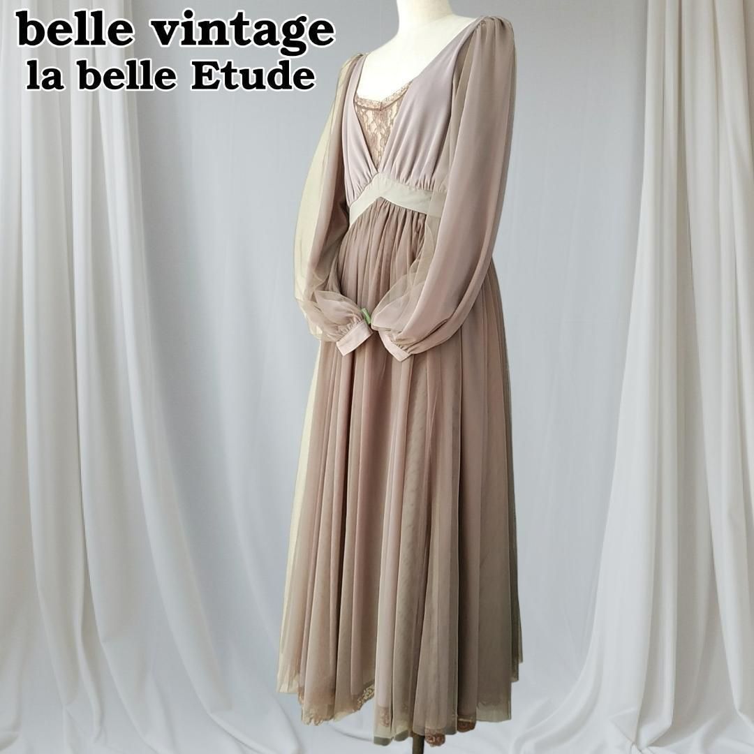 美品 la belle Etude belle vintage ロングワンピース チュールドレス ラベルエチュード 茶 ブラウン 240229-15