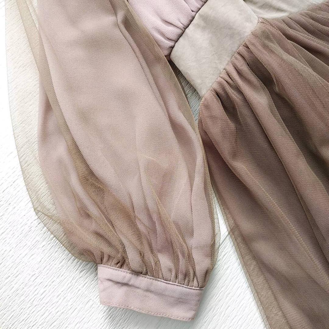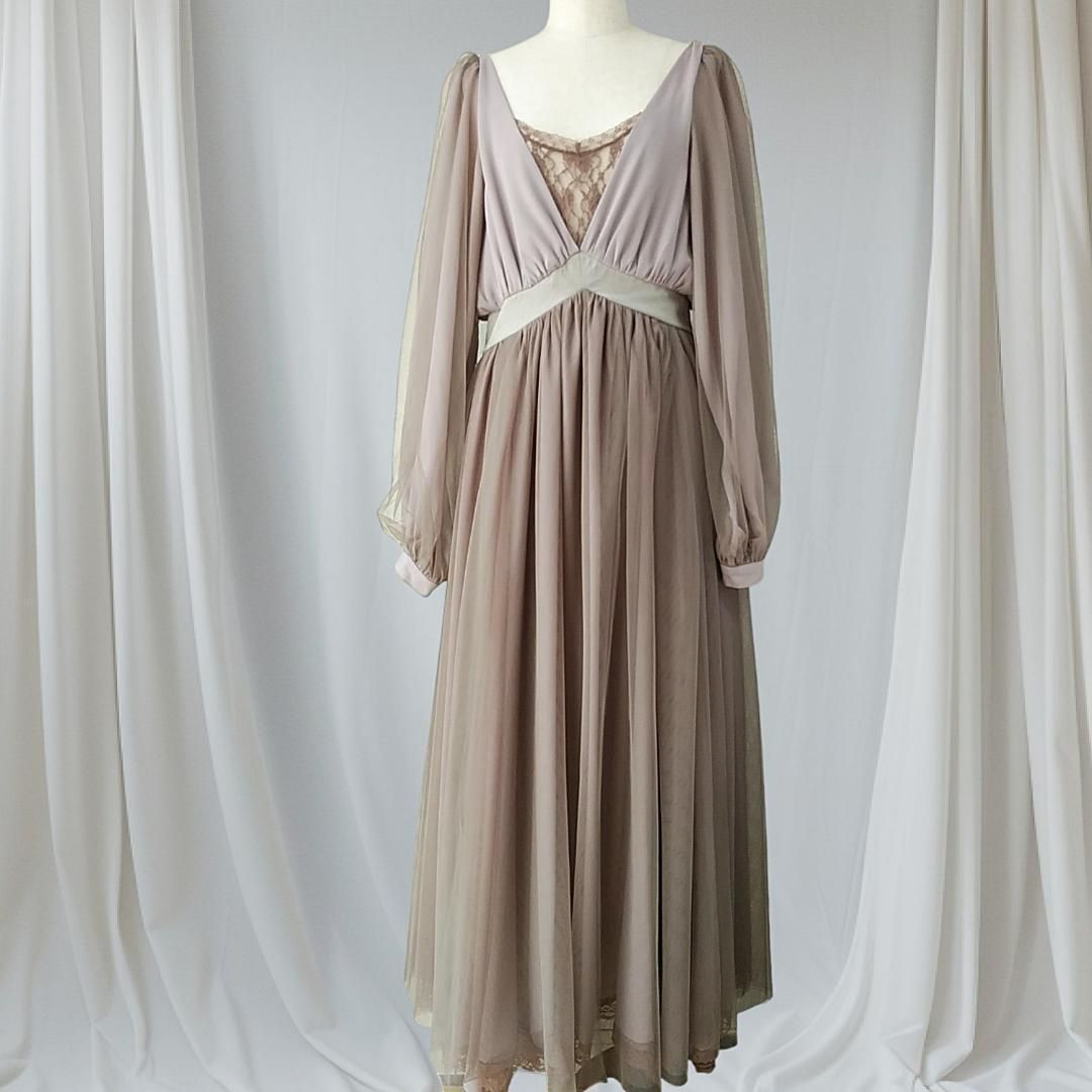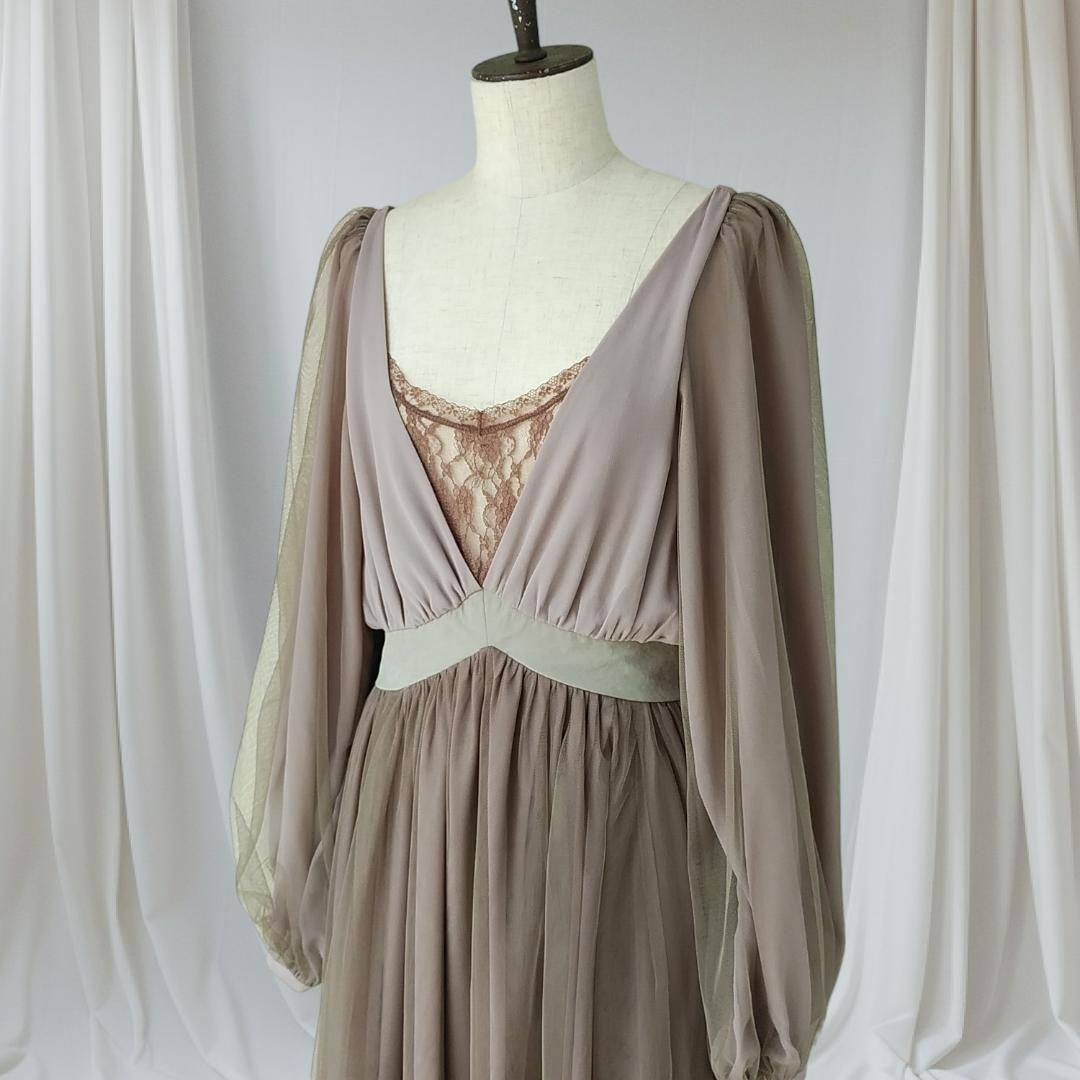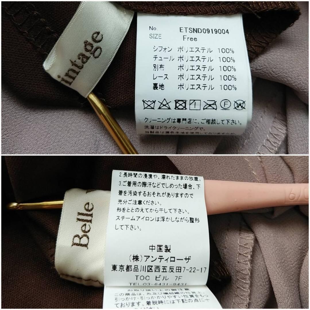 美品 la belle Etude belle vintage ロングワンピース チュールドレス ラベルエチュード 茶 ブラウン 240229-15