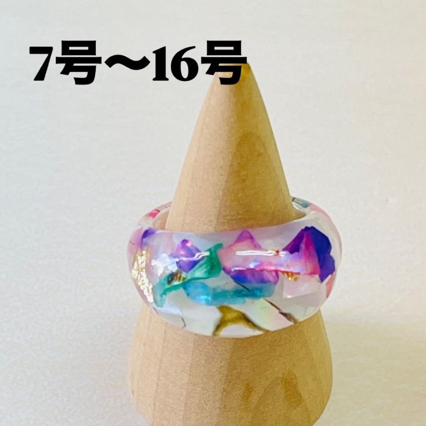 ◯シェルモザイクリングは、天然の貝殻を細かくカットし、モザイク状にデザインしたリングです