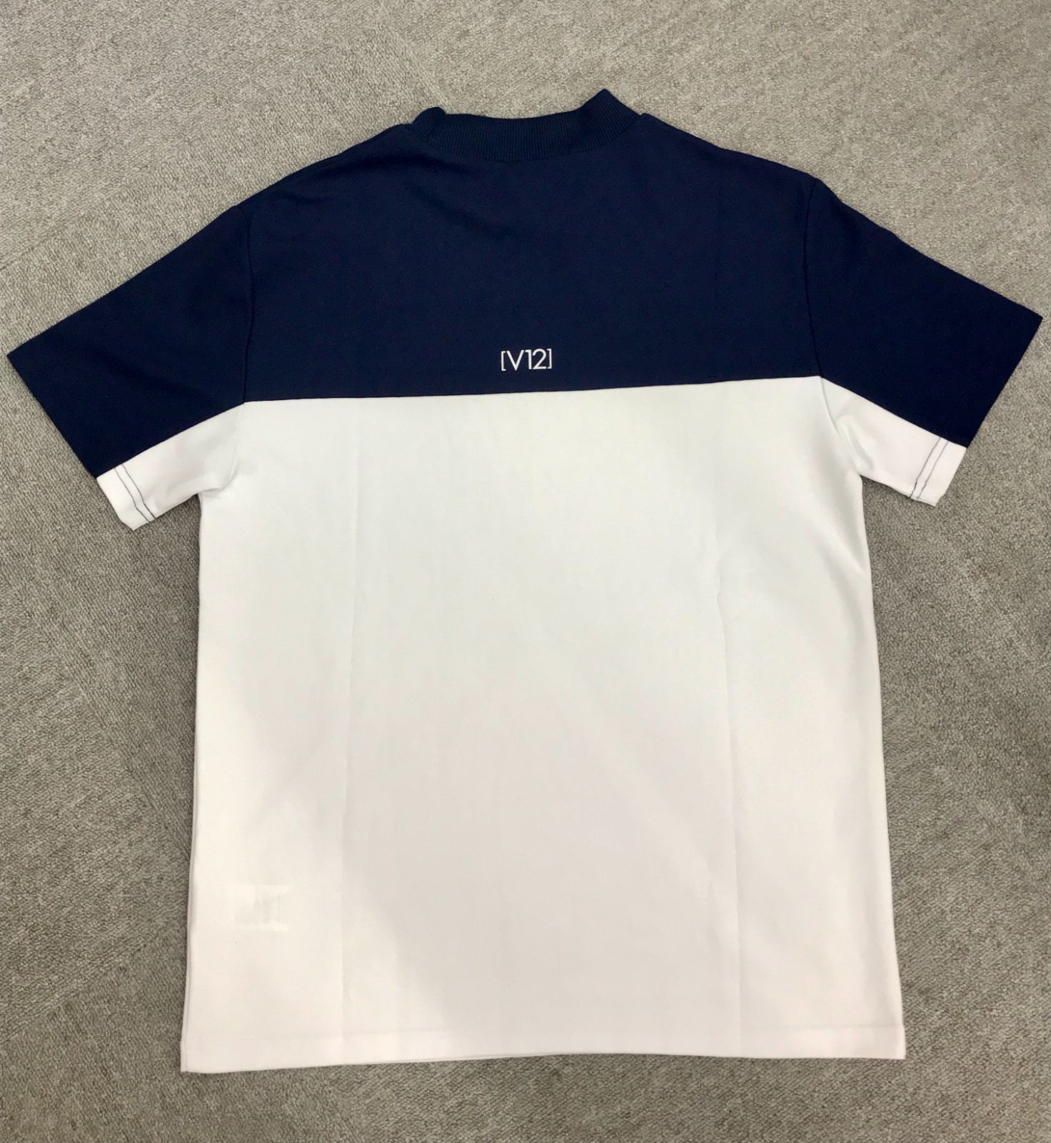 "上下のバイカラーが特徴のモックネック。