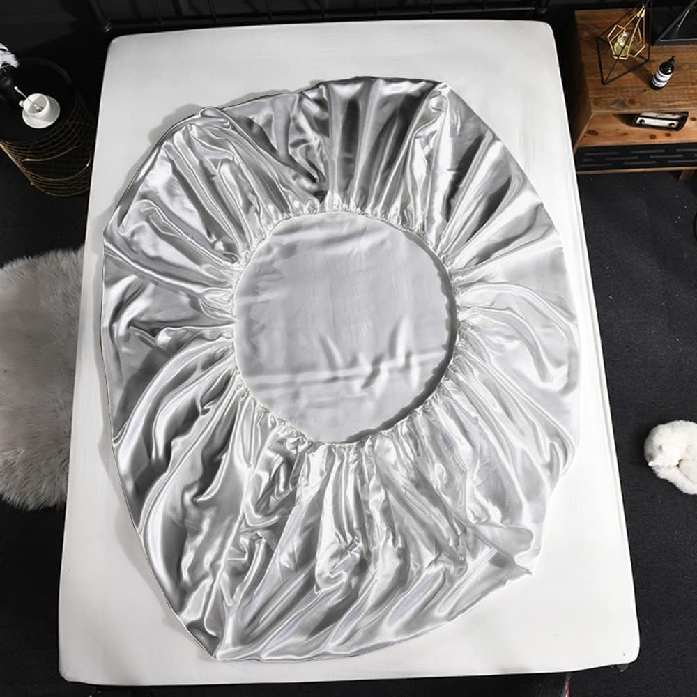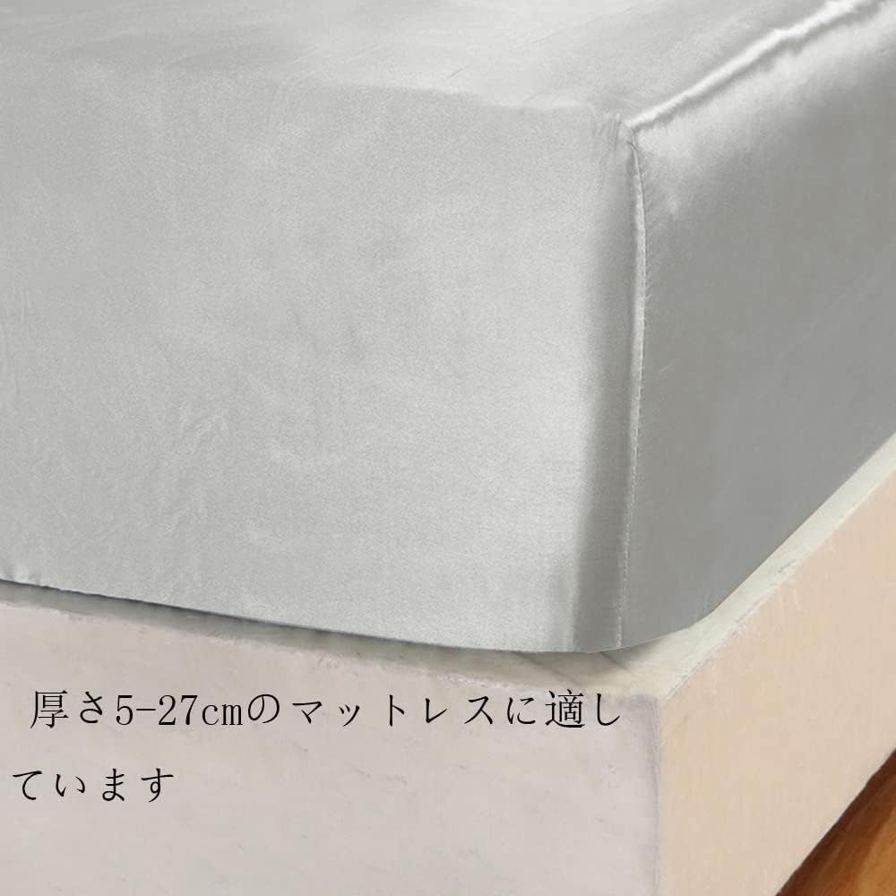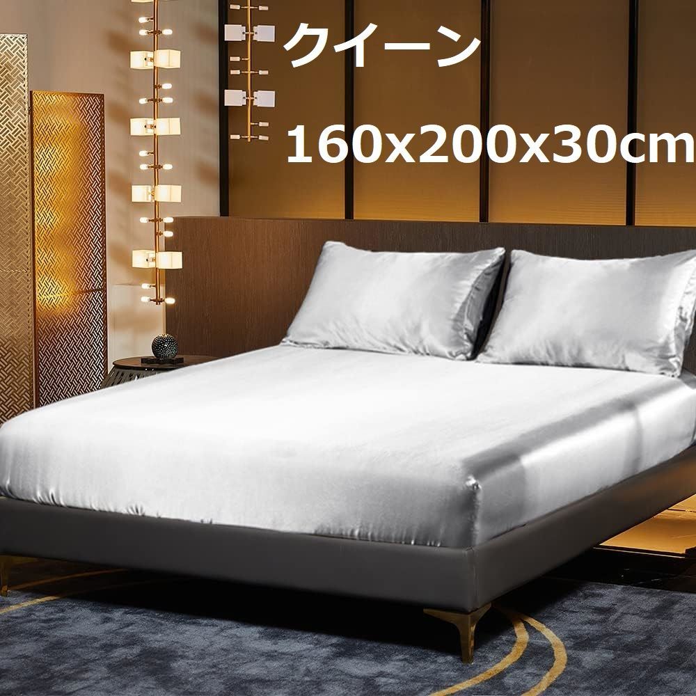 ボックスシーツ サテン ツルツル シルクみたい光沢 マットレスカバー 単品売り 洗える 吸水速乾 厚さ5-27cmのマットレスに適しています (クイーン・160X200X30cm・ライトグレー)