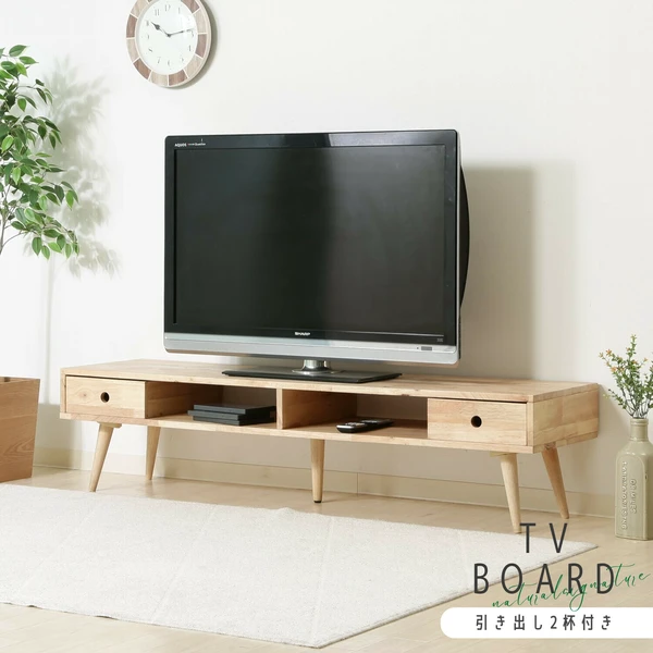 150cmのワイドサイズで、約50V型程度まで対応可能なTVボードです。天板の耐荷重は30kg。(写真のモニターは40型です)