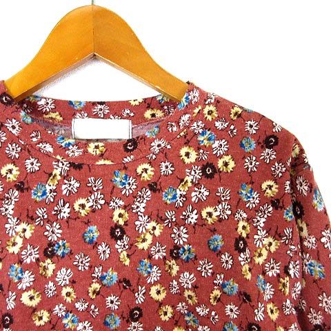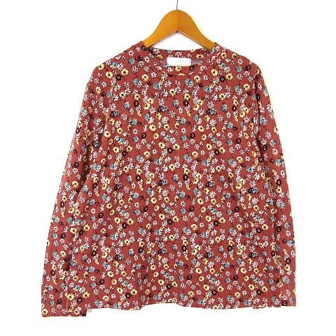 【商品名】百合 ニット カットソー リバティ 小花柄 ストレッチ 長袖 L ピンクブラウン マルチカラー