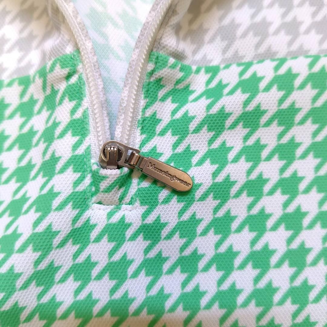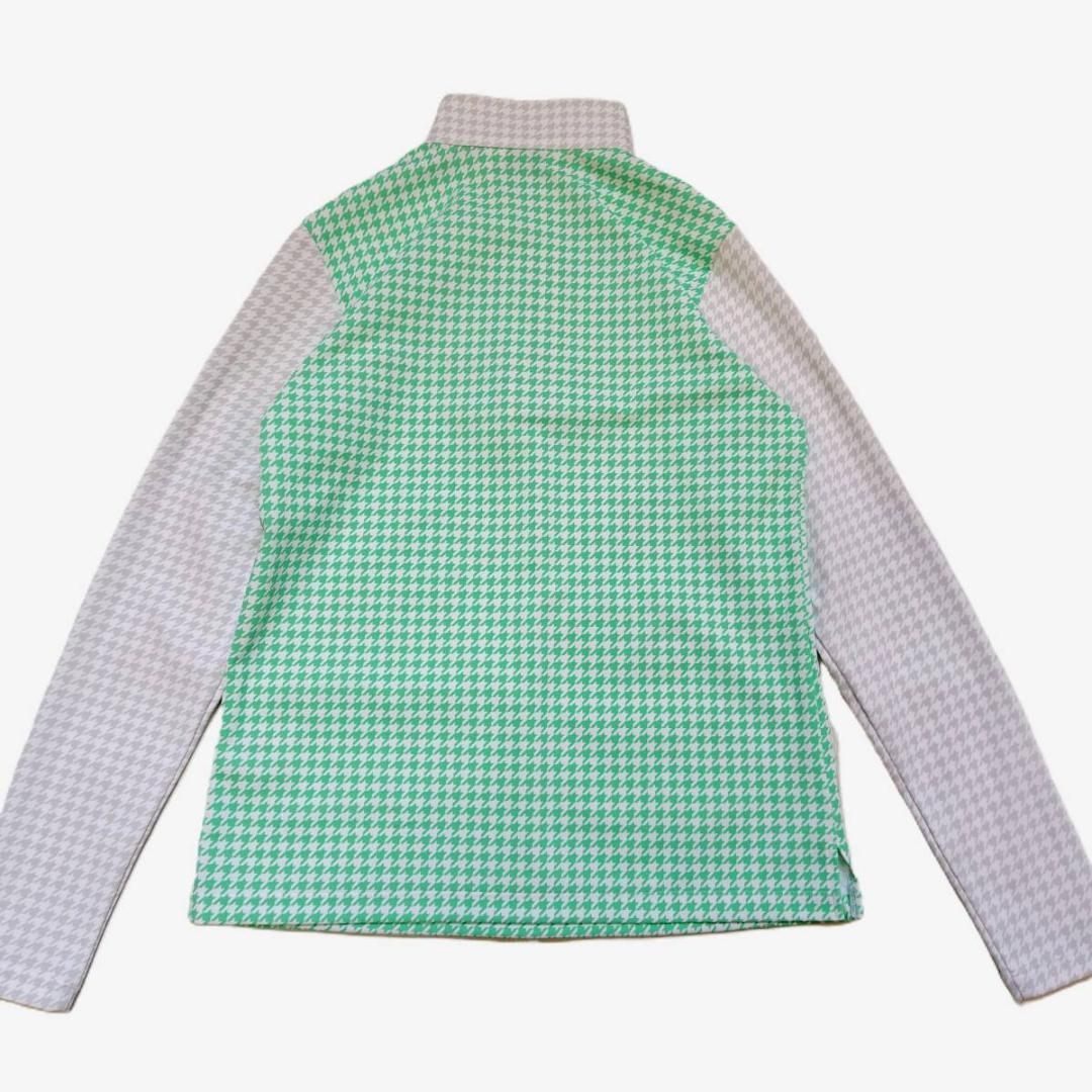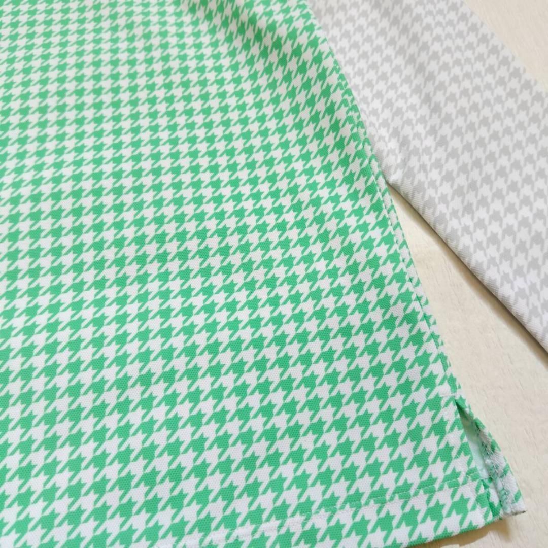 クラシックな千鳥格子柄を、爽やかなグリーンとグレーのバイカラーで大胆に切り替えた、主役級の一着。