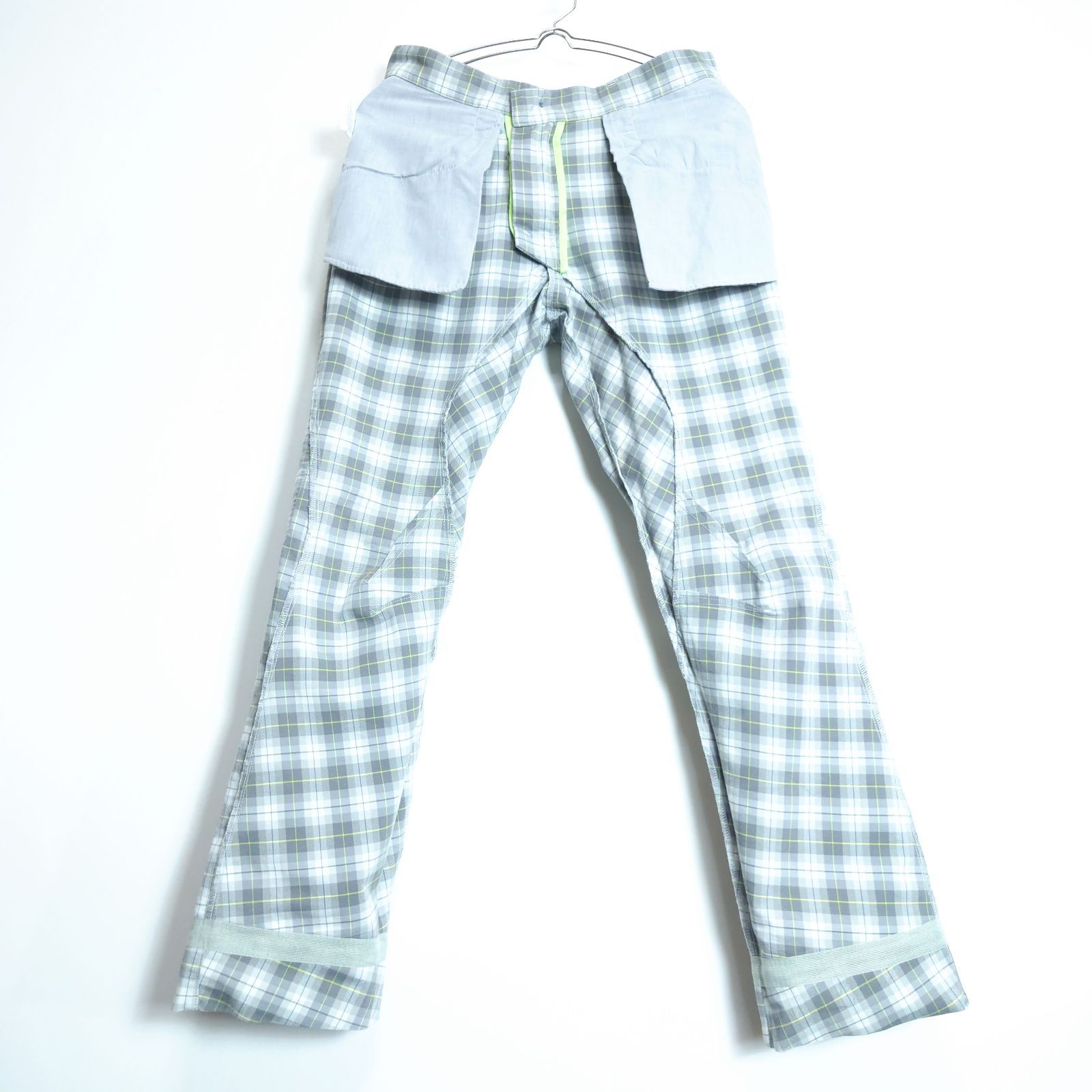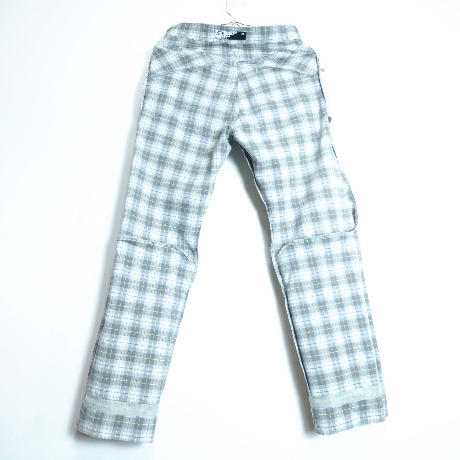 色はグレートーンのチェック柄で先染めの蛍光イエローが全体を引き締めています。