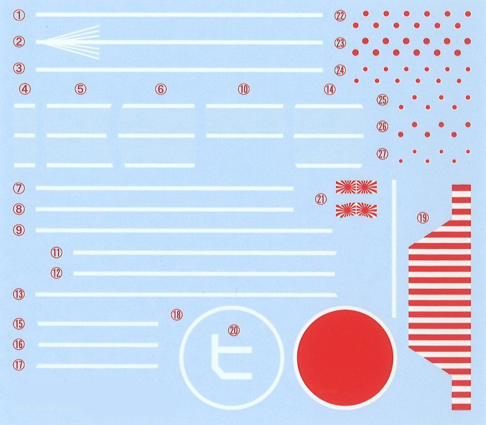 ・艦尾艦名や甲板支柱の白線用デカール2枚付属。