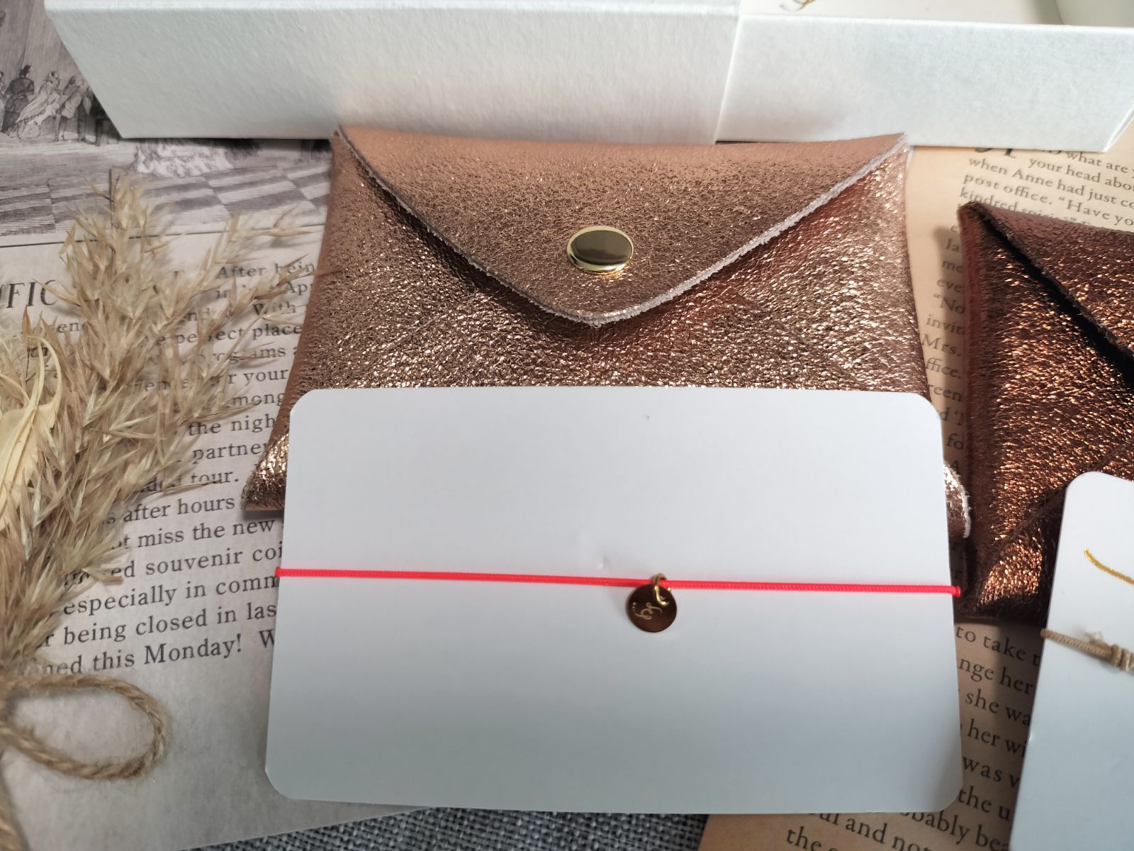 牛革製のカードホルダーと伸縮性のある可愛いブレスレットがセットになったアイテム◎