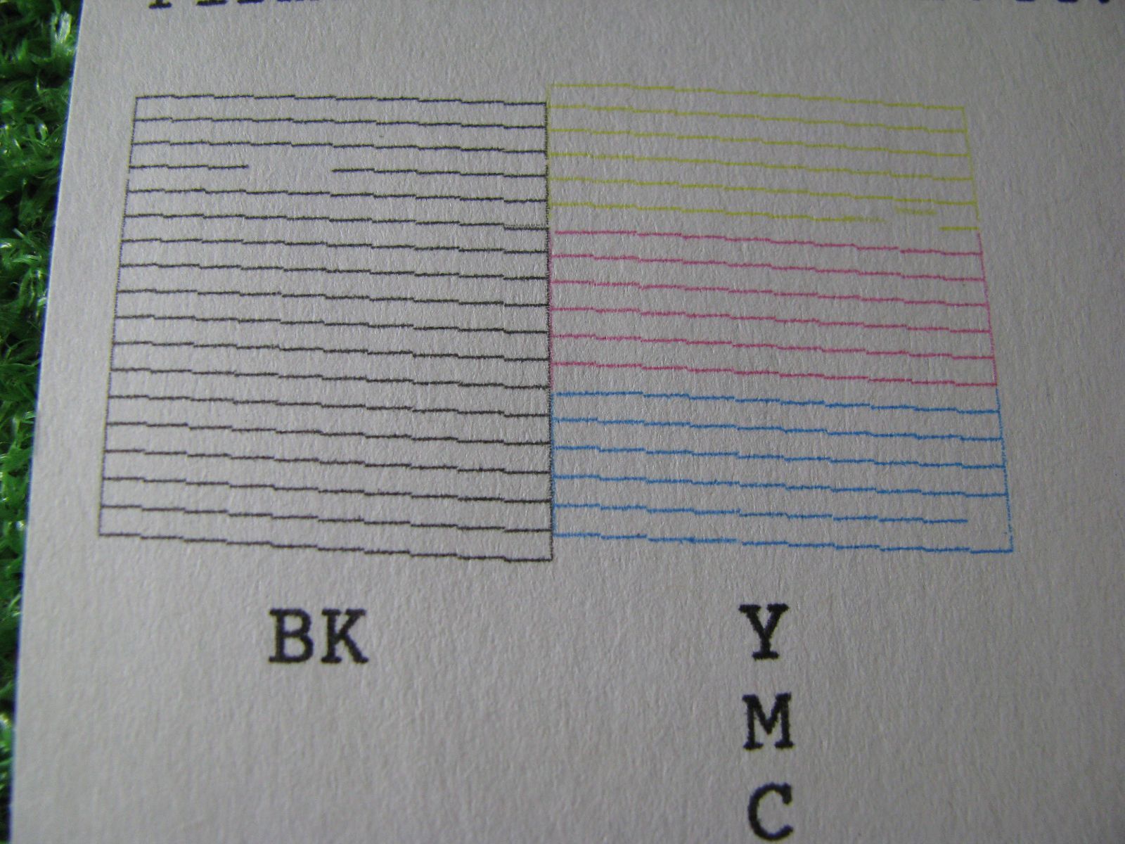 ノズルチェックパターンで目詰まりがあります。(写真は一例です)その為ジャンク扱いです。