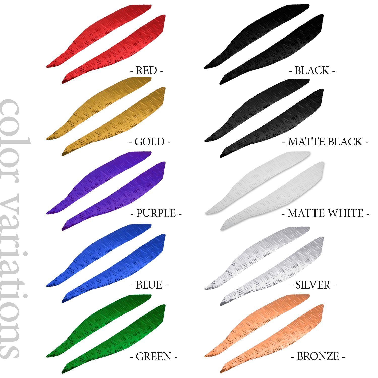 ■ブラック/ブルー/ゴールド/レッド/シルバー/グリーン/パープル/ブロンズ/マットホワイト/マットブラックの10色がございます。
