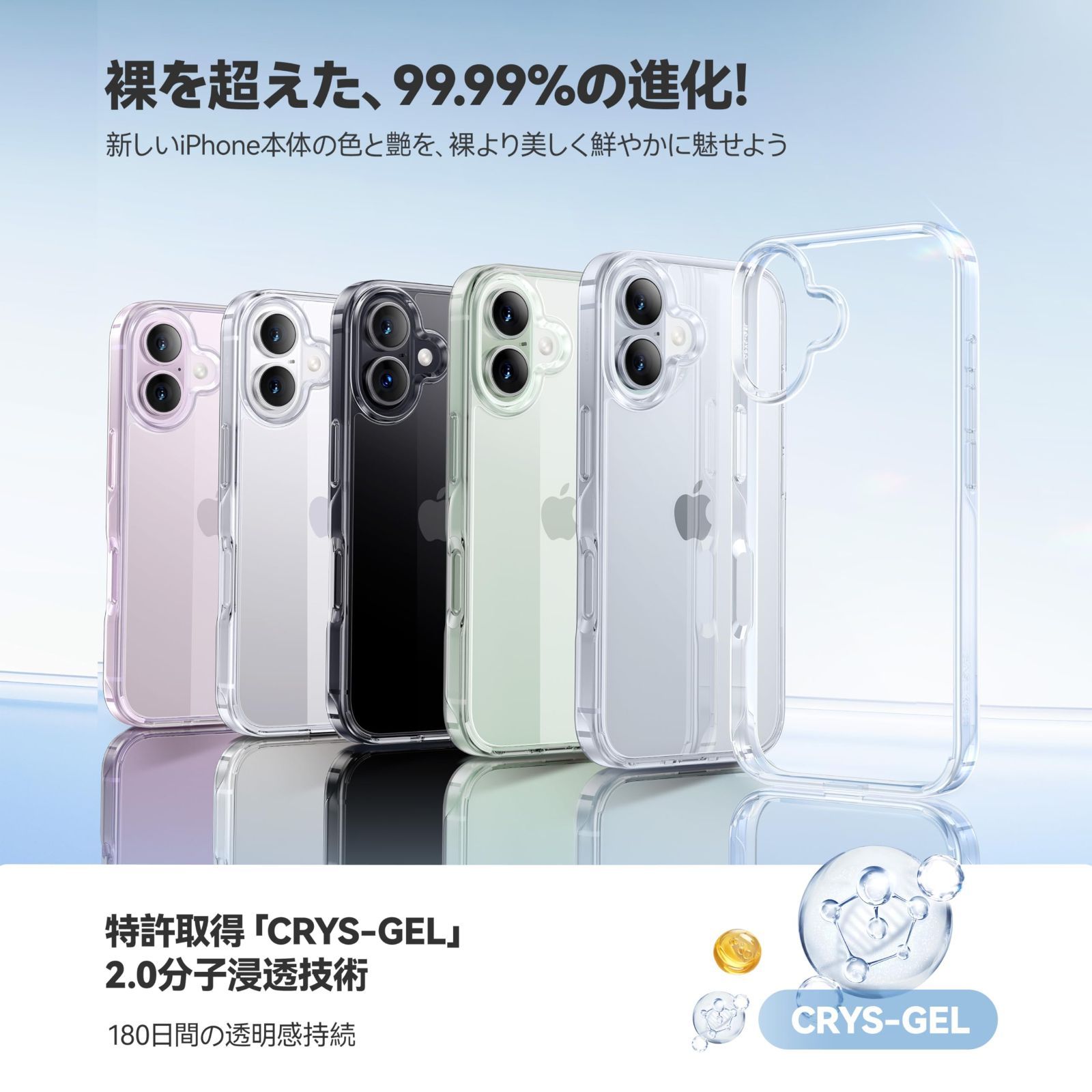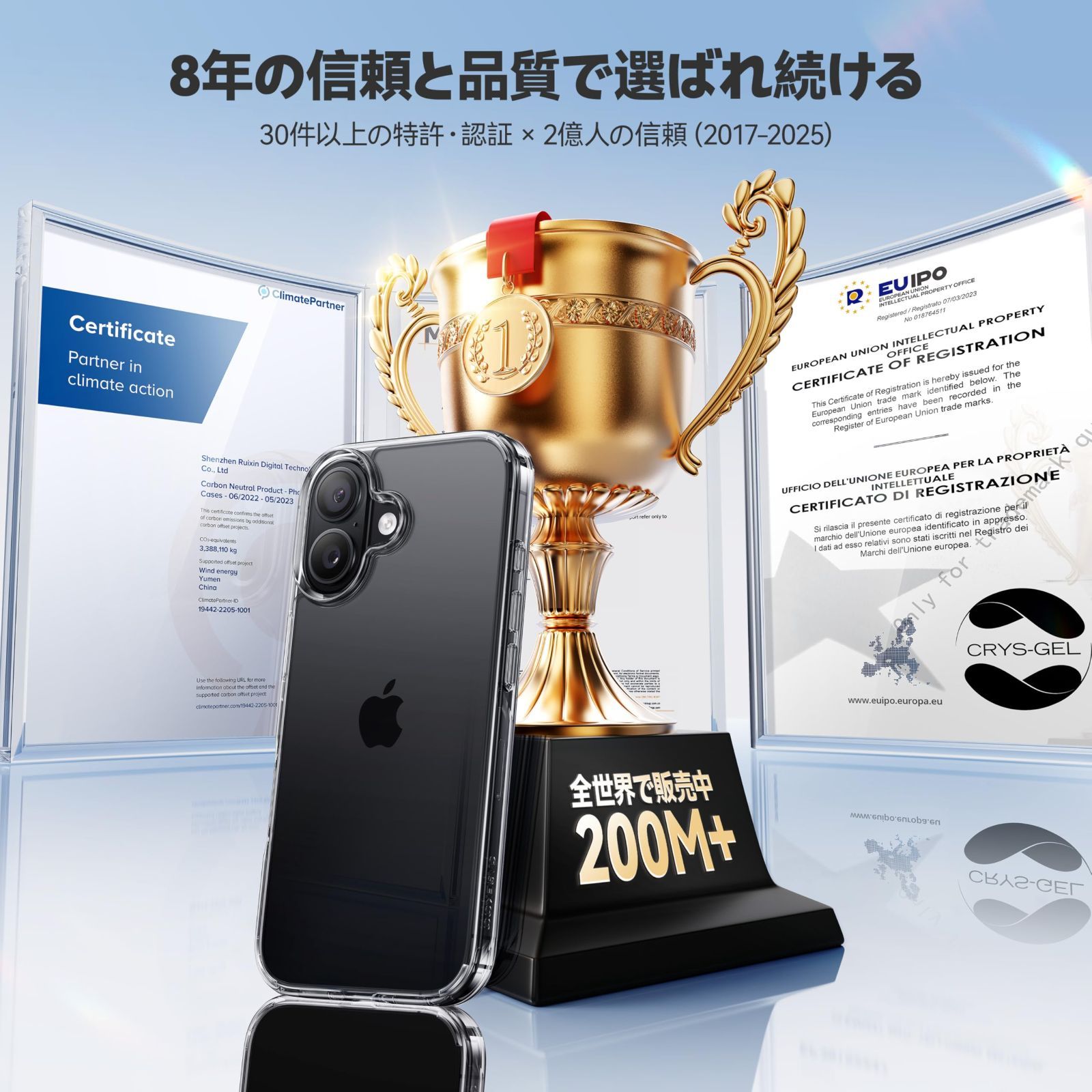 【究極の美しさ・99.99%の透明感】高透明度ダイヤPC素材を採用し、スマホ本来の美しさをそのまま引き立てます。特許取得の「CRYS-GEL」技術でケース内部に分子が浸透し、変色や劣化を徹底的に防止。180日間続く驚異的な透明感で、透明度と高級感を存分に楽しめます。抗UV性LCS認証番号:LCS210425017AR200|認証機関:LCS Compliance Testing Laboratory|認証時間:May 08 2024 対応機種:iphone 17 ケース