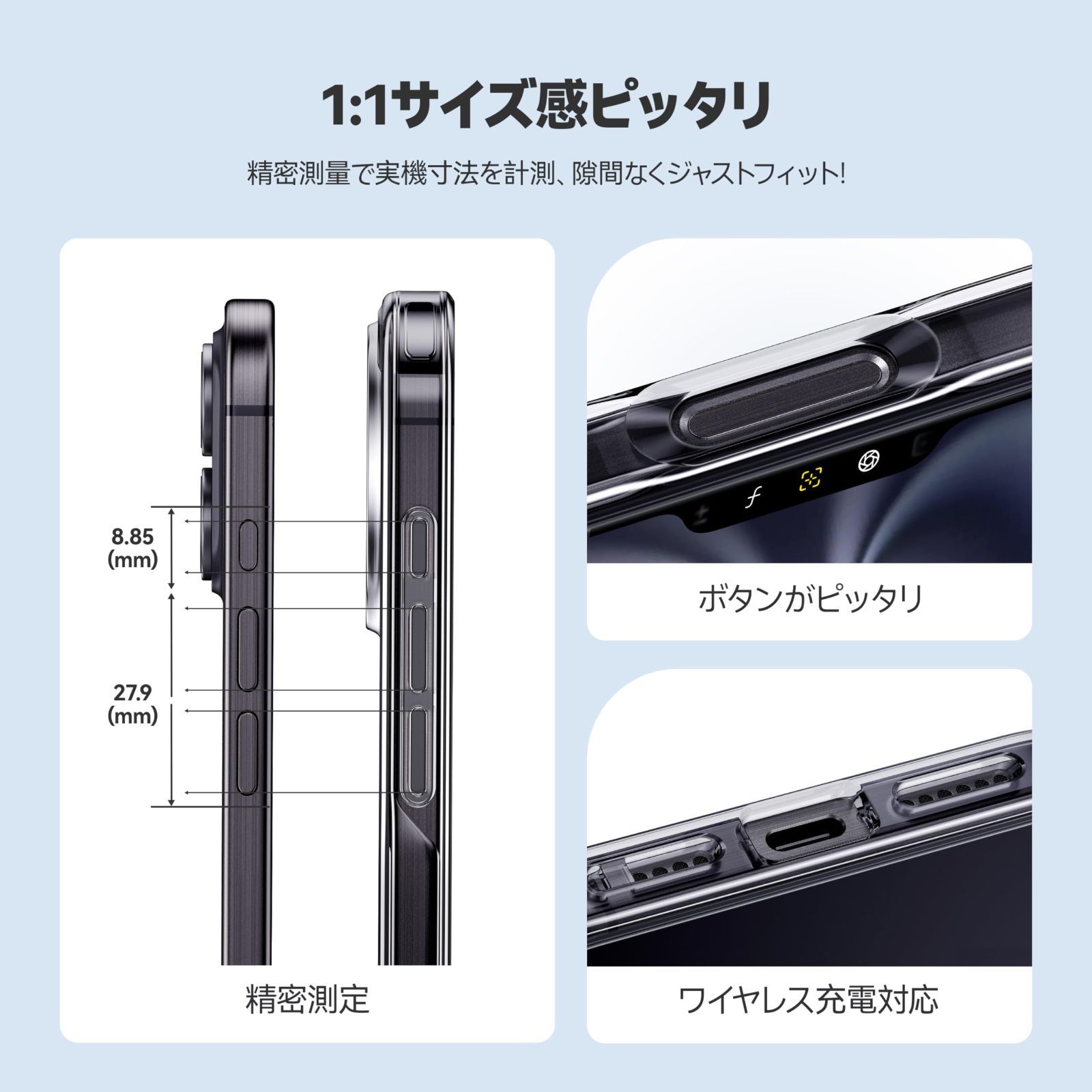 【完璧なフィット感・超精密設計】精密機械測定で厳密に寸法を測定し、誤差ゼロの1:1密着度を実現。隙間なく本体にぴったりフィットし、全てのボタンも完璧に合わせて、優れた押し心地を提供します。ケースを装着したままでもスムーズな操作が可能。精細な設計と精密な加工、厳選素材のハイブリッド構造で、驚異的な装着感を実現しました。対応機種:アイホン17ケース