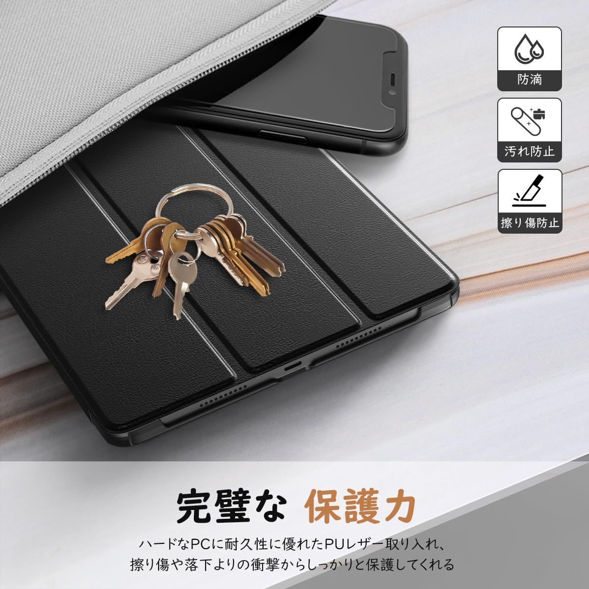 「上質な素材採用」 蓋表面は手触りが良く高級感のあふれる耐久性に優れた高級PUレザーで、バックケースは耐衝撃性の高く頑丈なPC素材を採用しており、裏地材質は液晶表面に優しいマイクロファイバーの仕上がりで、タブレット本体をやわらかく包み込みながら、不意による落下の衝撃から緩和できて、タブレットに最高の保護力を提供してくれます。