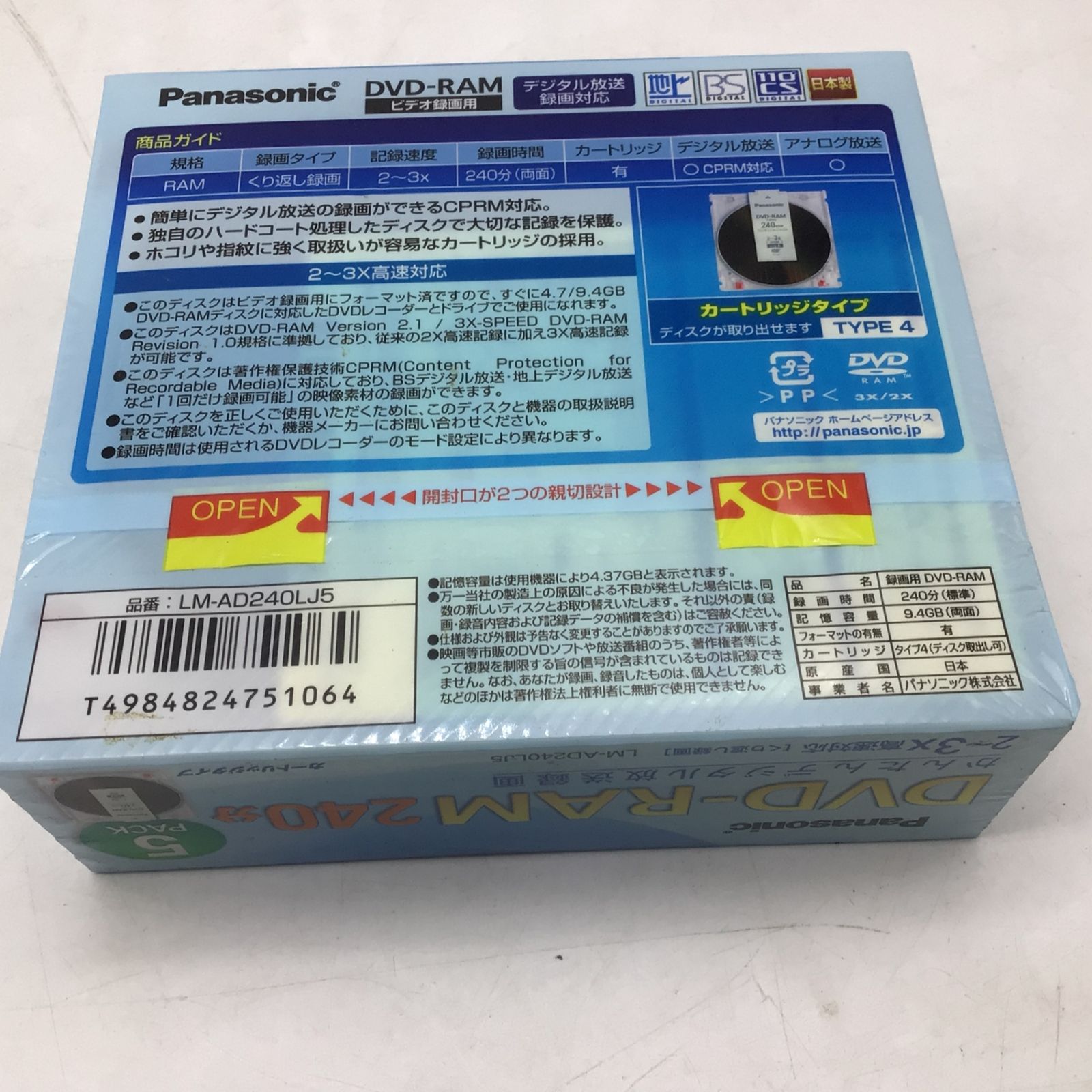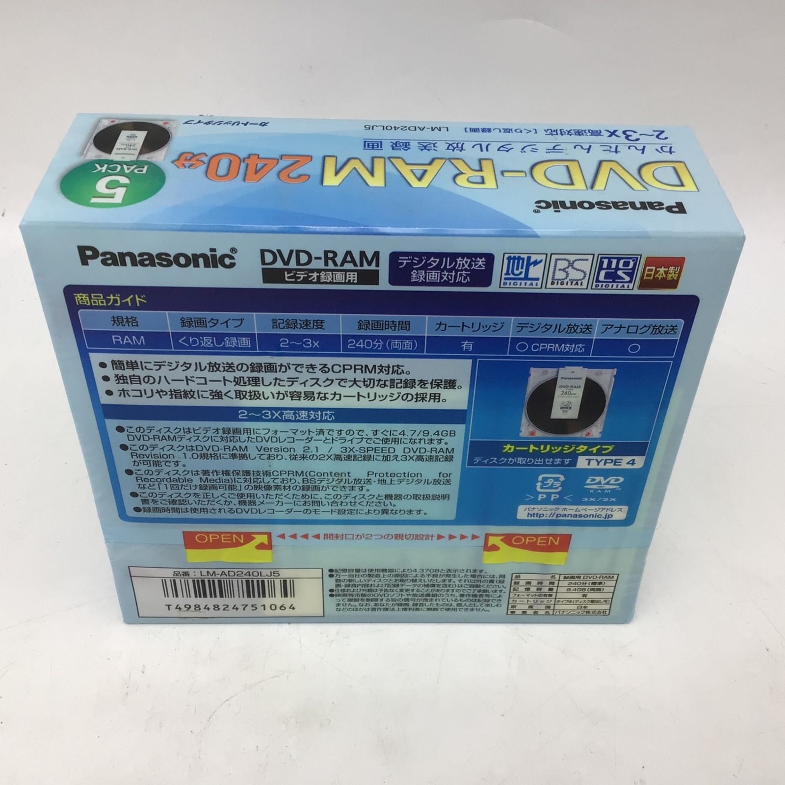 ・Panasonic パナソニック DVD-RAM LM-AD240LJ5 日本製 240分 9.4GB CPRM対応 録画用 2~3倍速 5枚組。