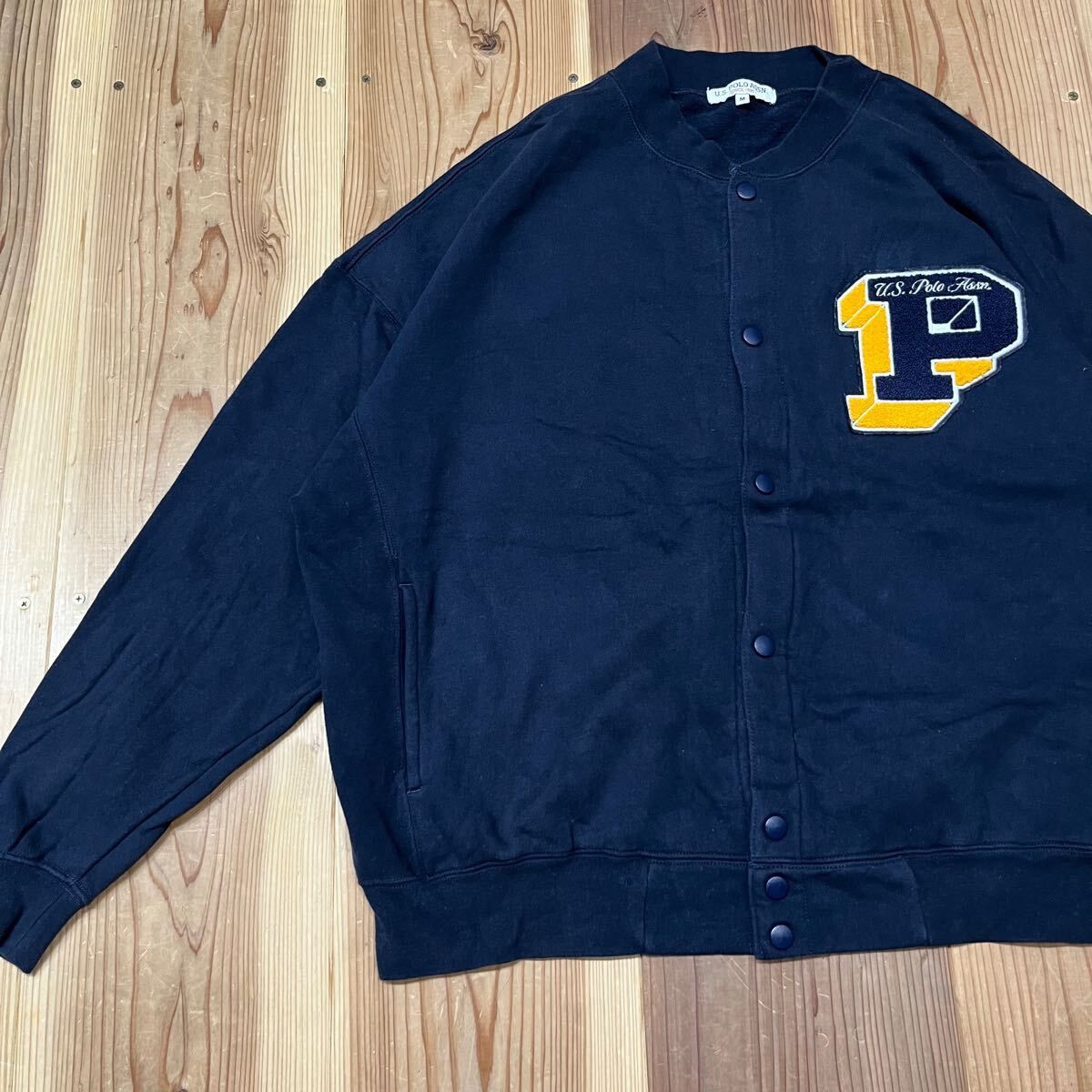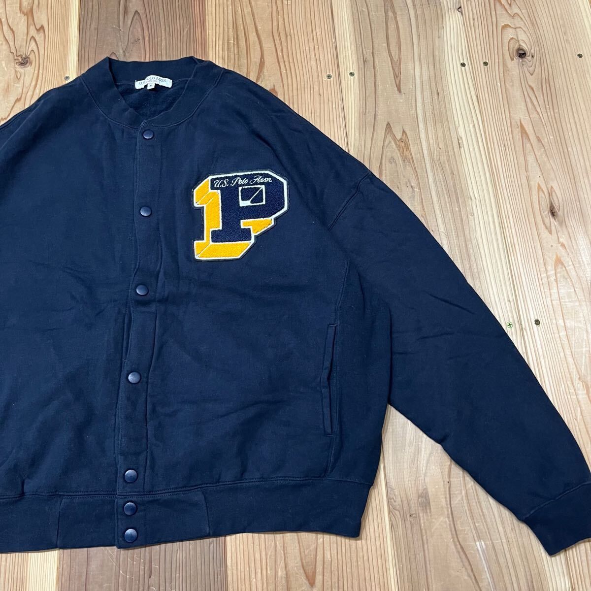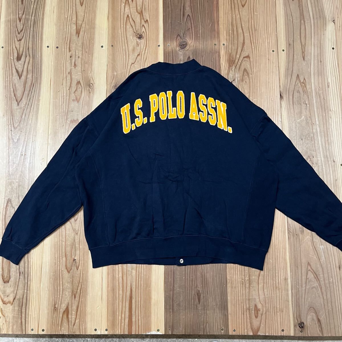 u.s POLO ASSN ユーエスポロアッスン sweat スウェットスタジャン カーディガン ワッペン 背面ビッグロゴ アメカジ ネイビー 玉mc3348