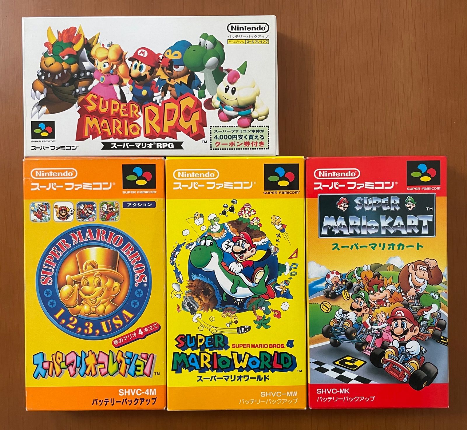 スーパーファミコンシリーズ箱説付き4本セットになります。付属品は画像にあるものですべてです。ソフトはすべて任天堂スーパーファミコン本体にて動作確認済みです。