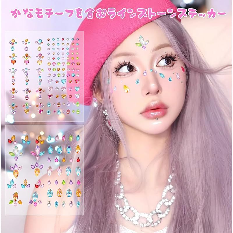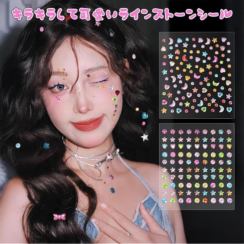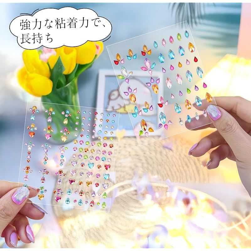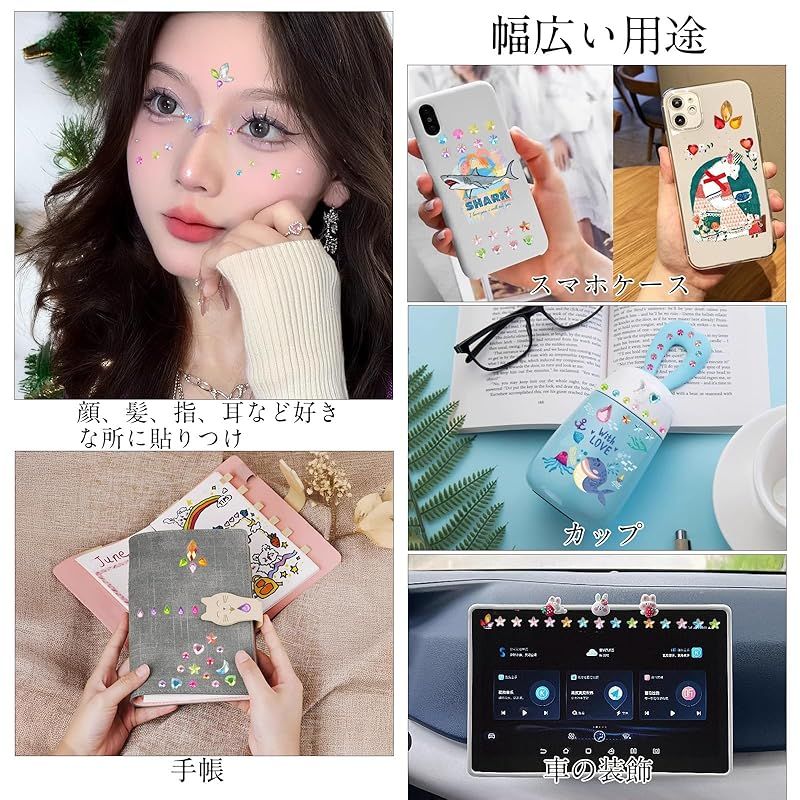 【幅広い用途】ラインストーンメイクシールは、顔、髪、指、耳など好きな所に貼るだけでなく、スマホケース、カップ、手帳、パソコン、車などを装飾することができ、楽しみをもたらすDIY用品です