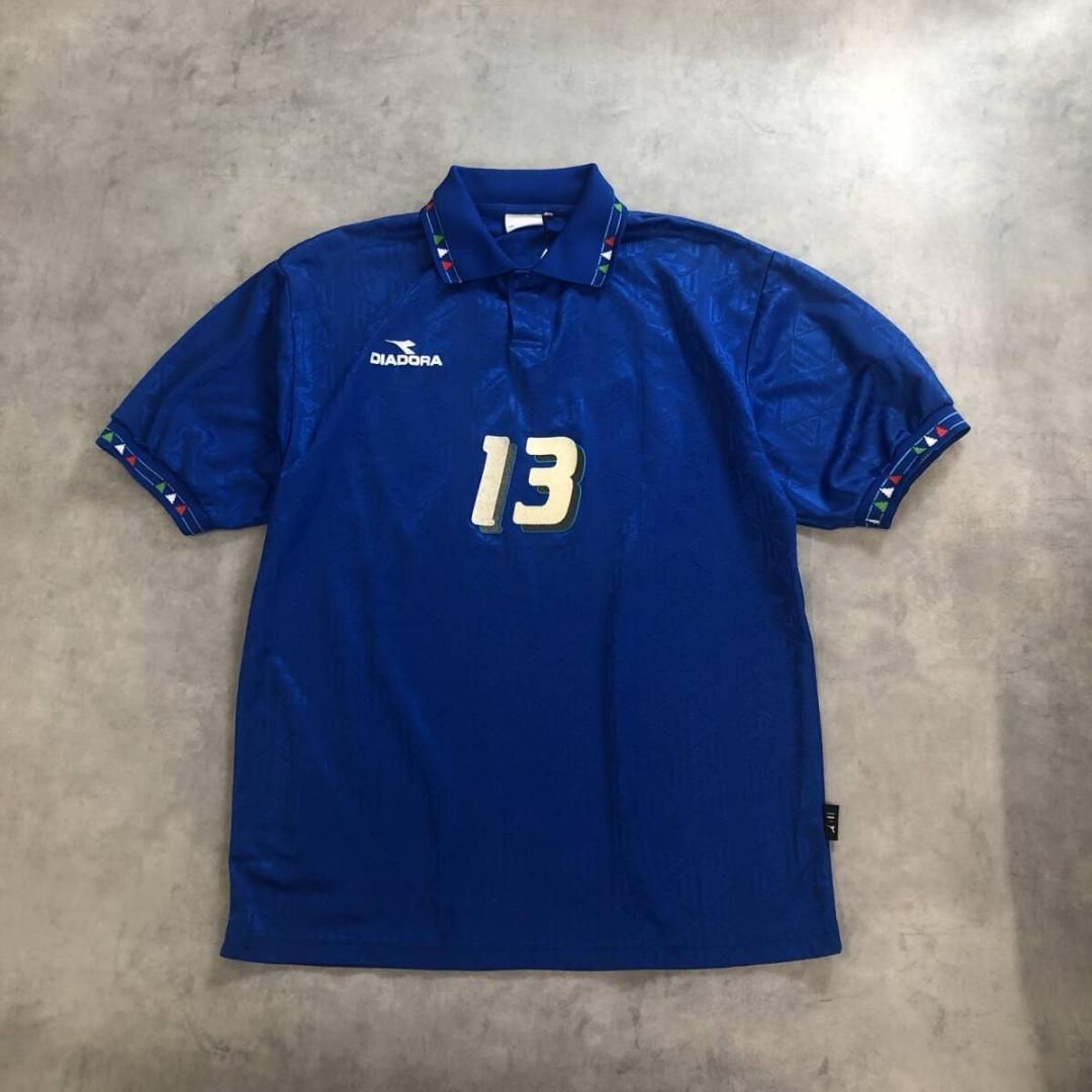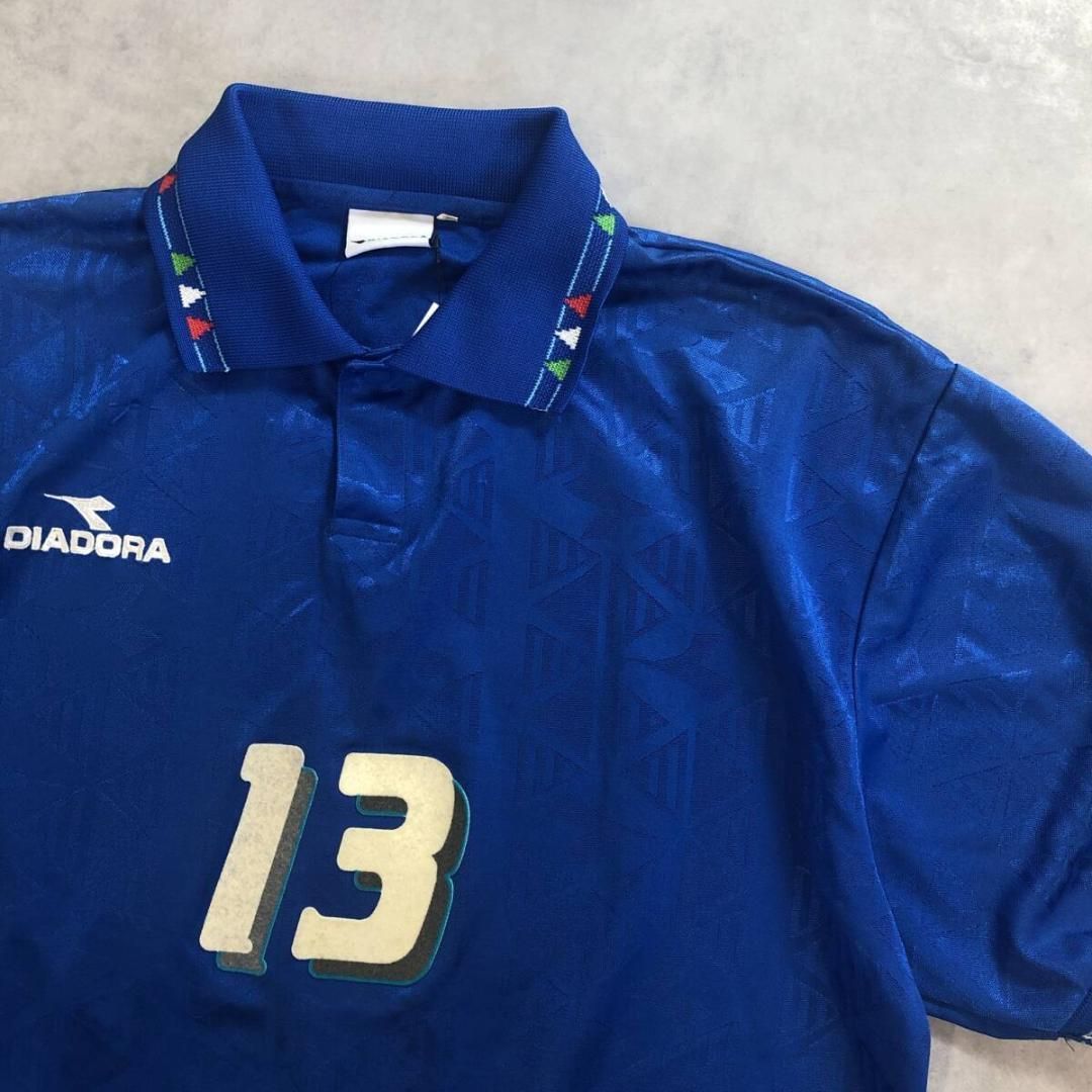 商品名 :GQ585◇DIADORA : 1994年 サッカー イタリア代表ユニフォーム◇O◇青系 ゲームシャツ ディアドラ