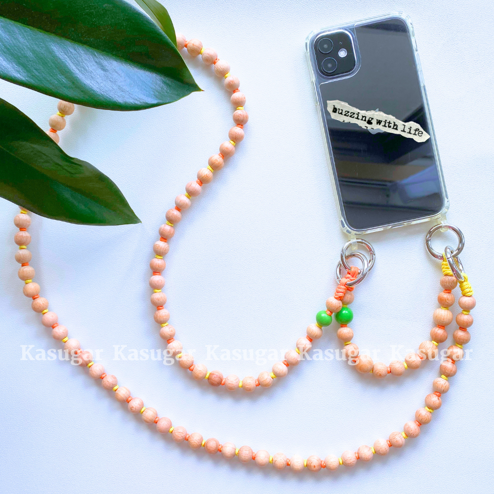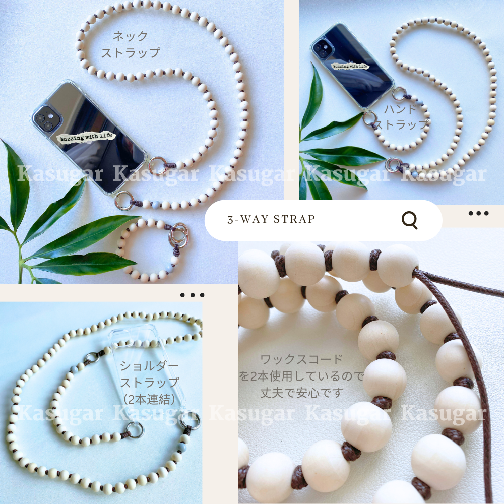 14mmの木製ボールで作られた【3WAY】ストラップです。