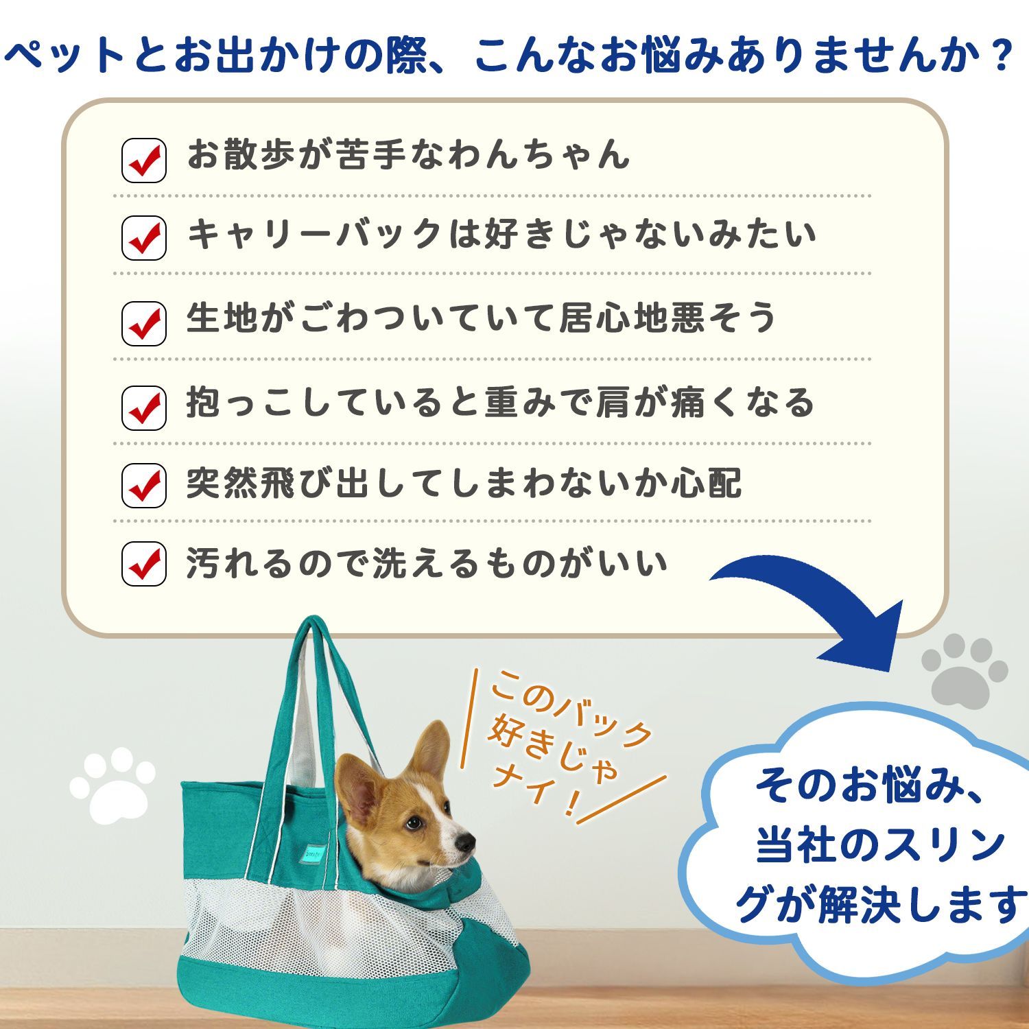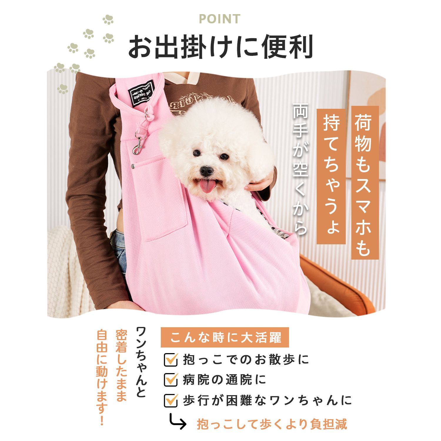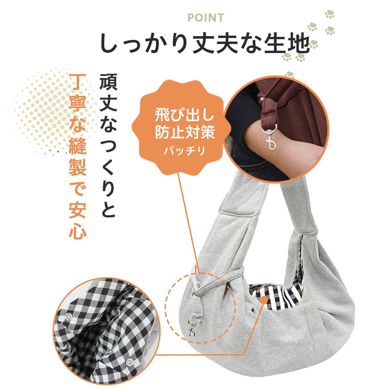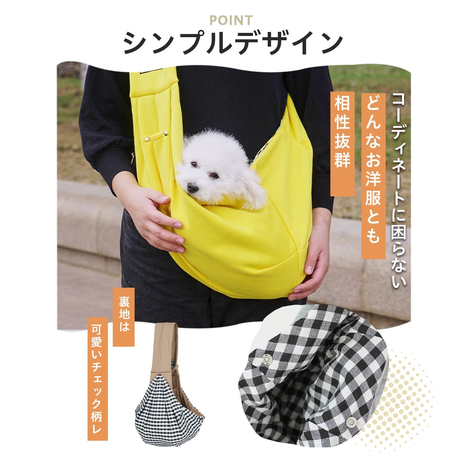 商品説明 愛犬・愛猫とのお出かけに便利な斜め掛けタイプのペットスリングバッグです。