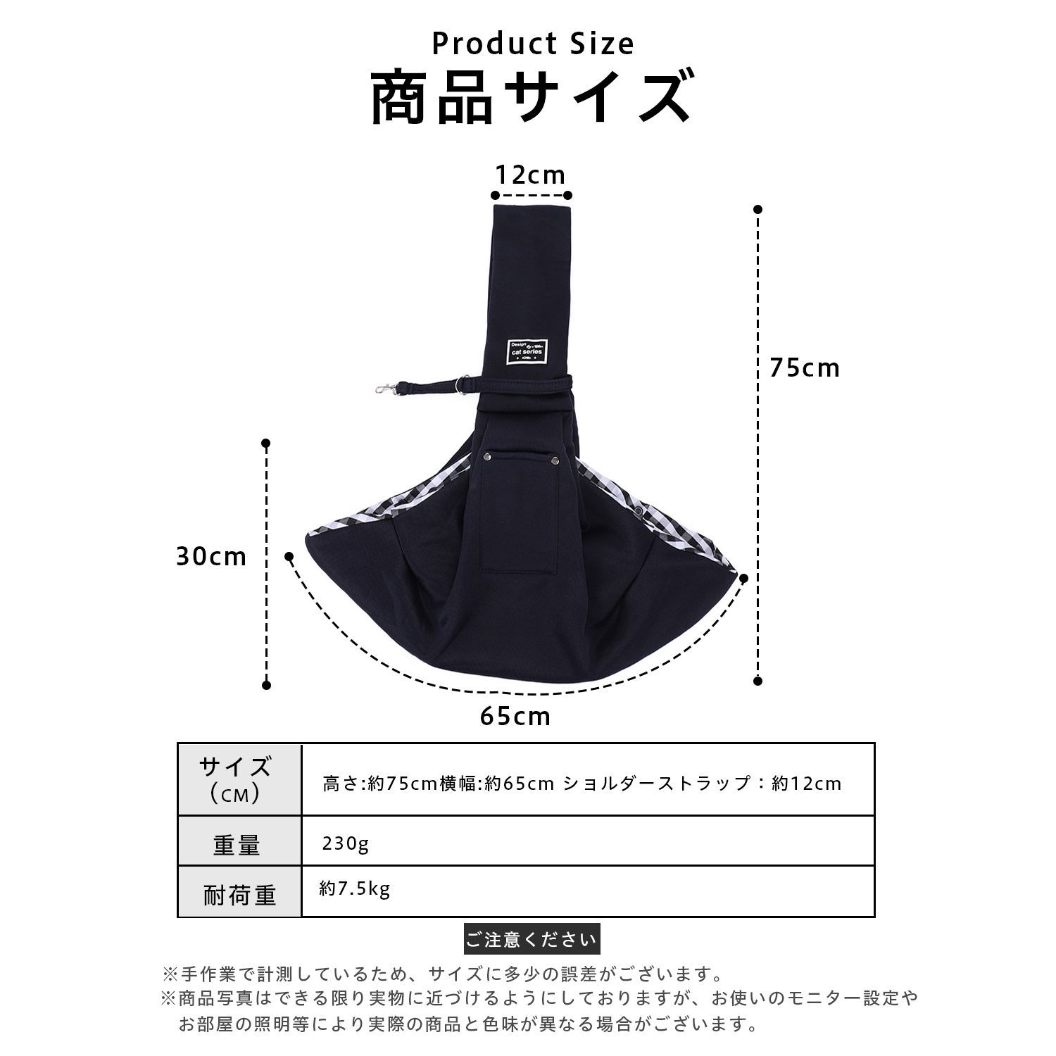 注意事項 ご購入前に必ずサイズとペットの体重をご確認ください。(目安:7kg以内)