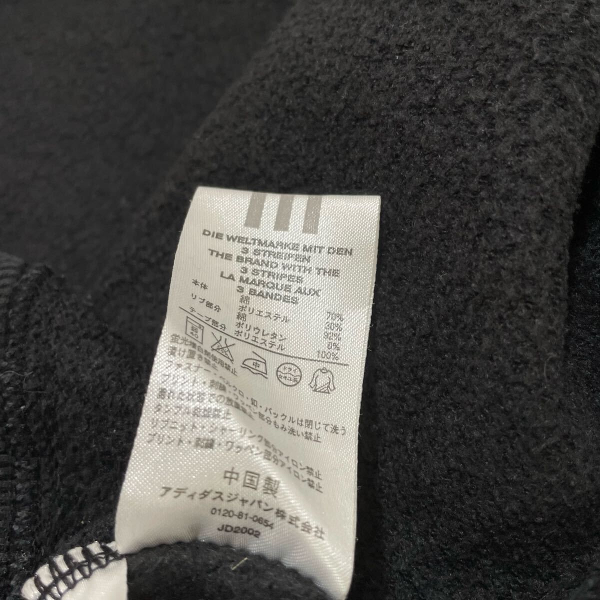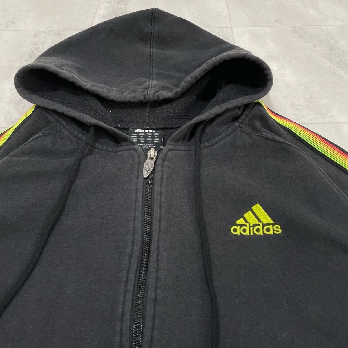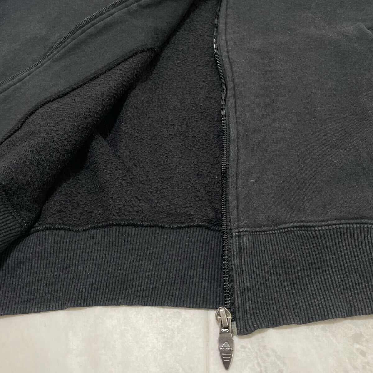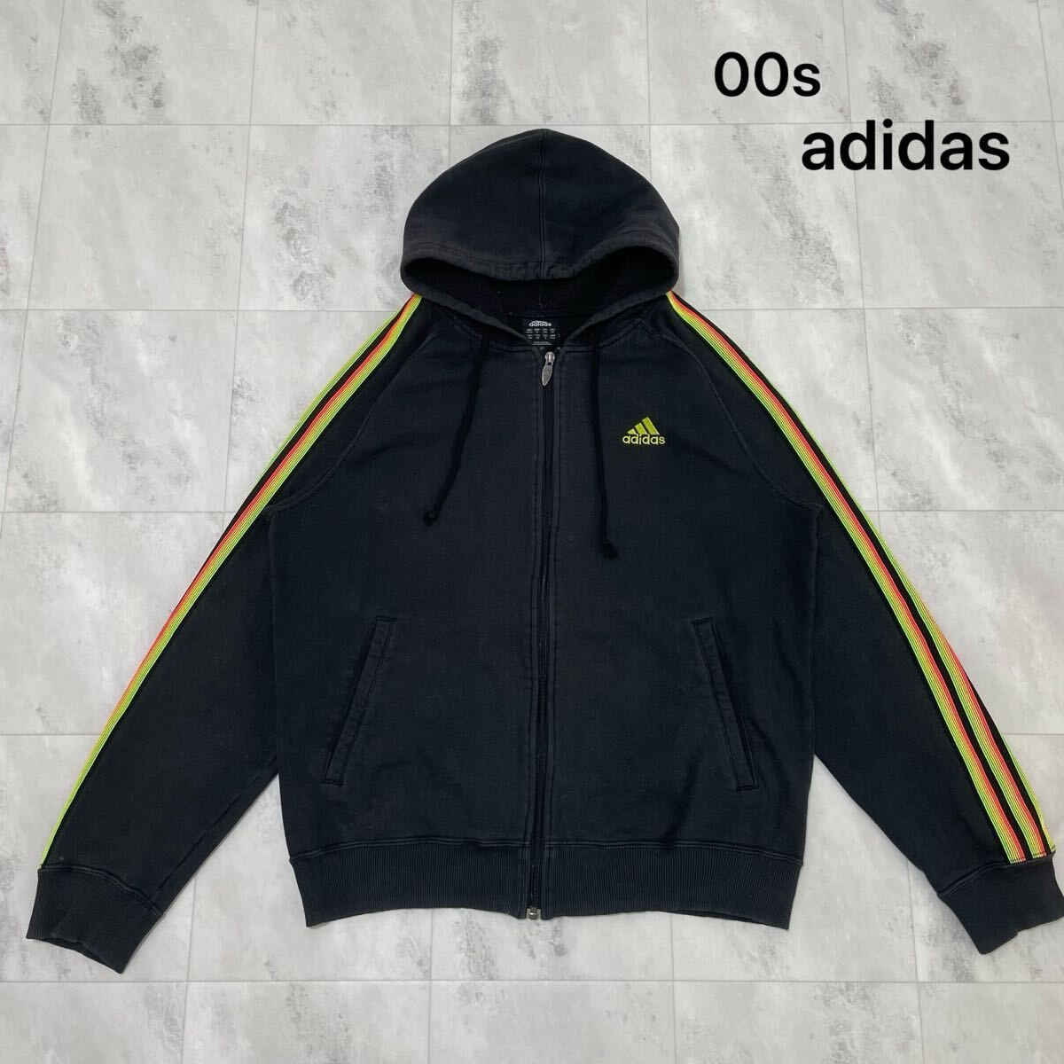 00s adidas アディダス sweat hoodie スウェットパーカー 袖スリーライン ジップパーカー 刺繍ロゴ ブラック サイズO(XL) 玉FL3989