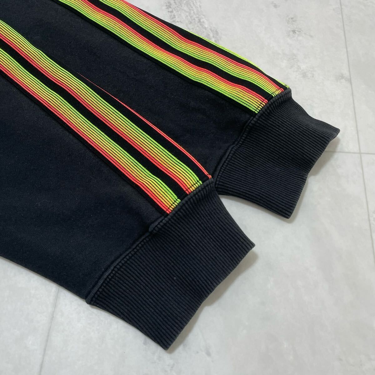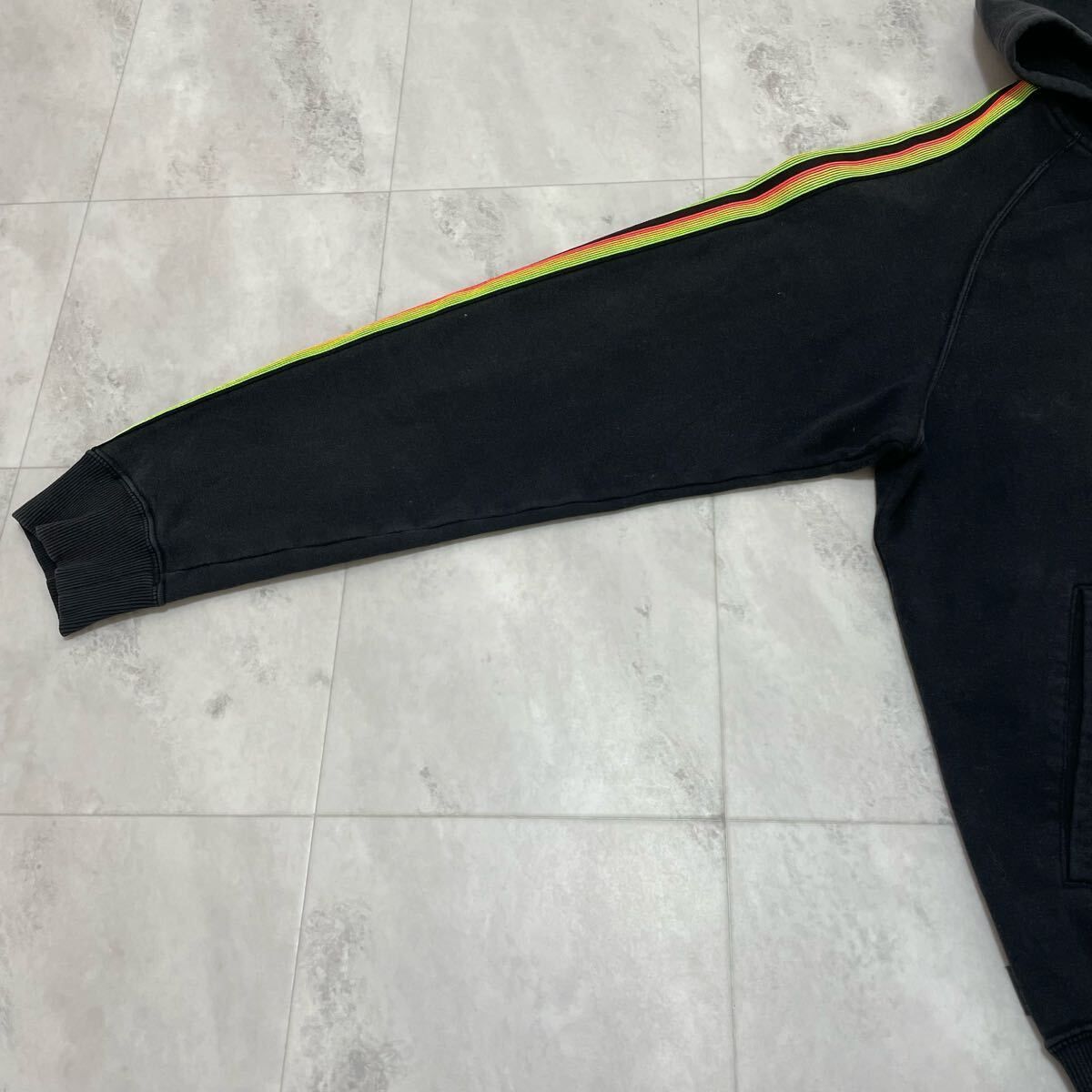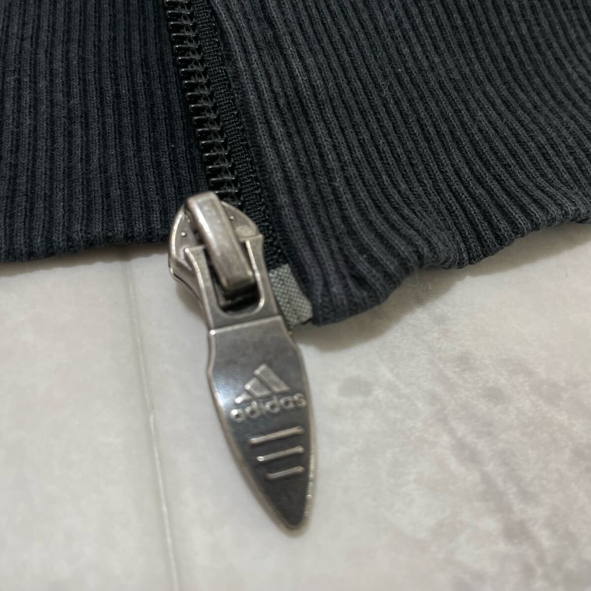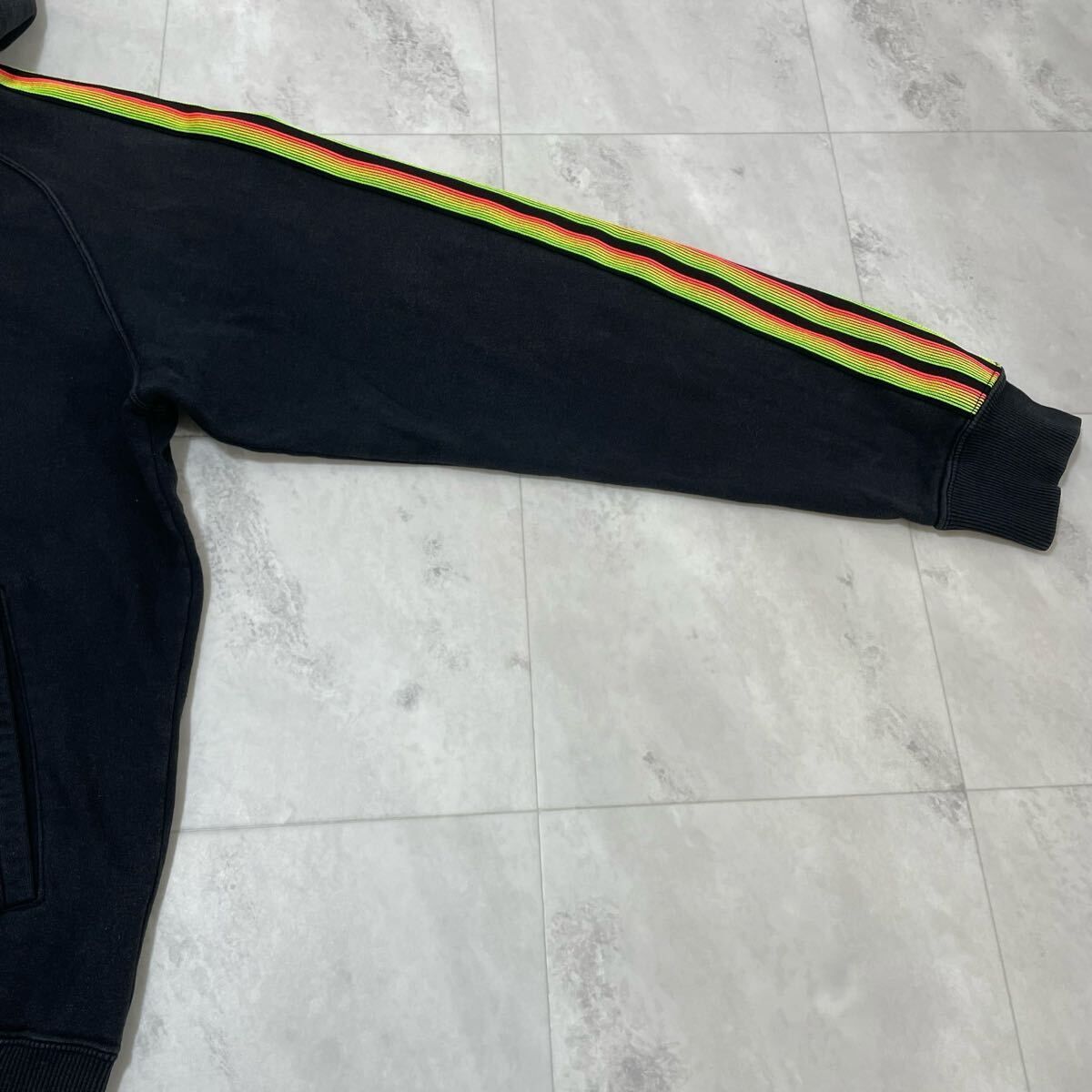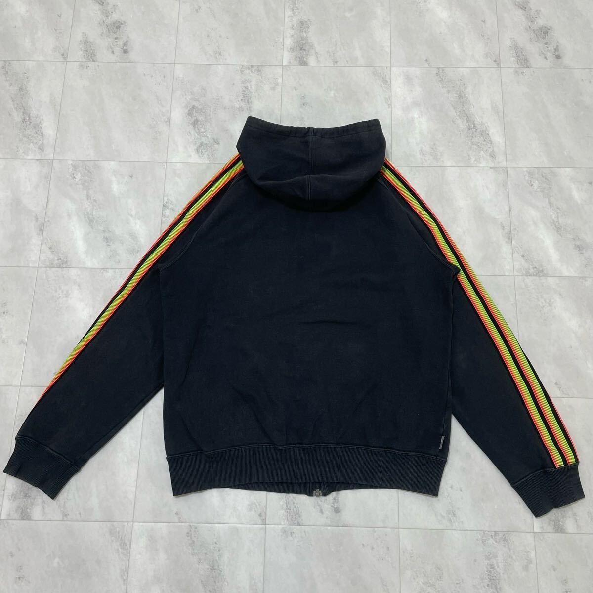 00s adidas アディダス sweat hoodie スウェットパーカー 袖スリーライン ジップパーカー 刺繍ロゴ ブラック サイズO(XL) 玉FL3989