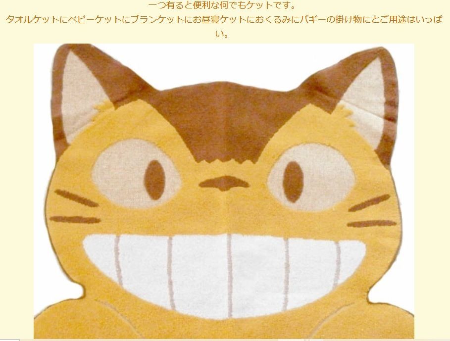 大胆なトトロとネコバスの体型のタオルケットが大好評です。