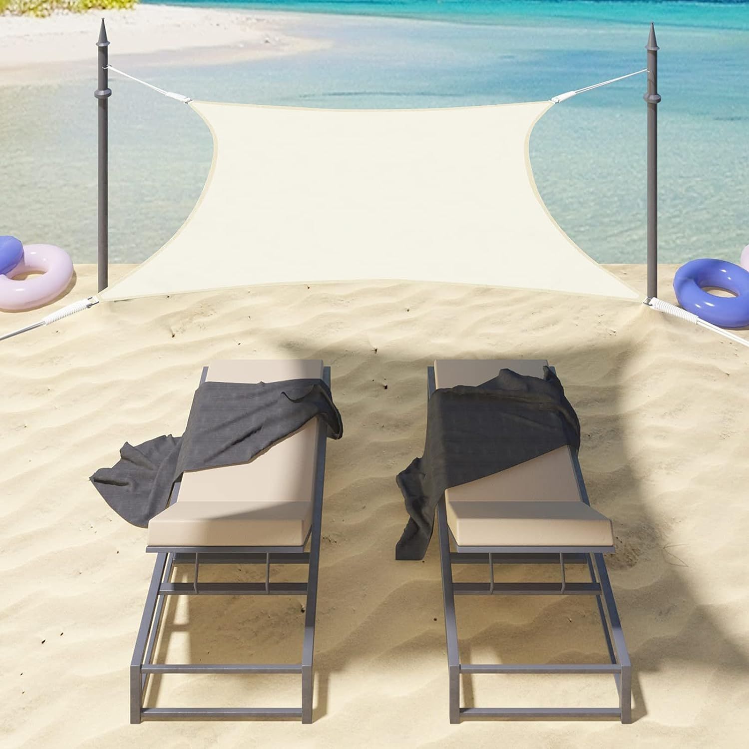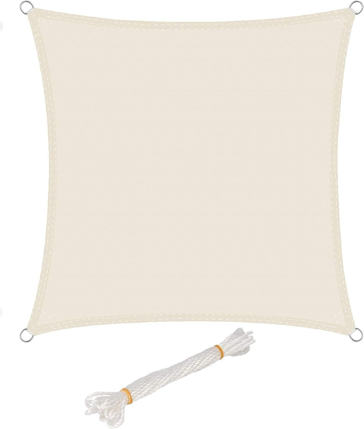 WOLTU 日除けシェード サンシェード 正方形 2x2m ポリエステル 換気 日焼け止め 簡単設置 固定ロープ 付属 クリーム