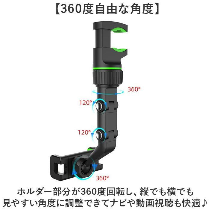 ホルダー部分が360度回転し、縦でも横でも見やすい角度に調整できてナビや動画視聴も快適♪