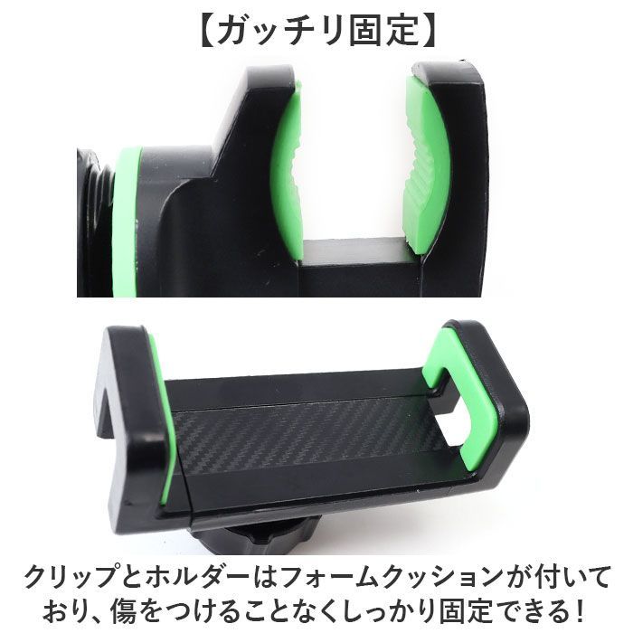 クリップとホルダーはフォームクッションが付いており、傷をつけることなくしっかり固定できる!