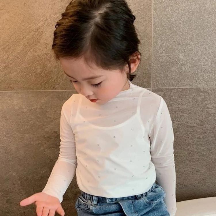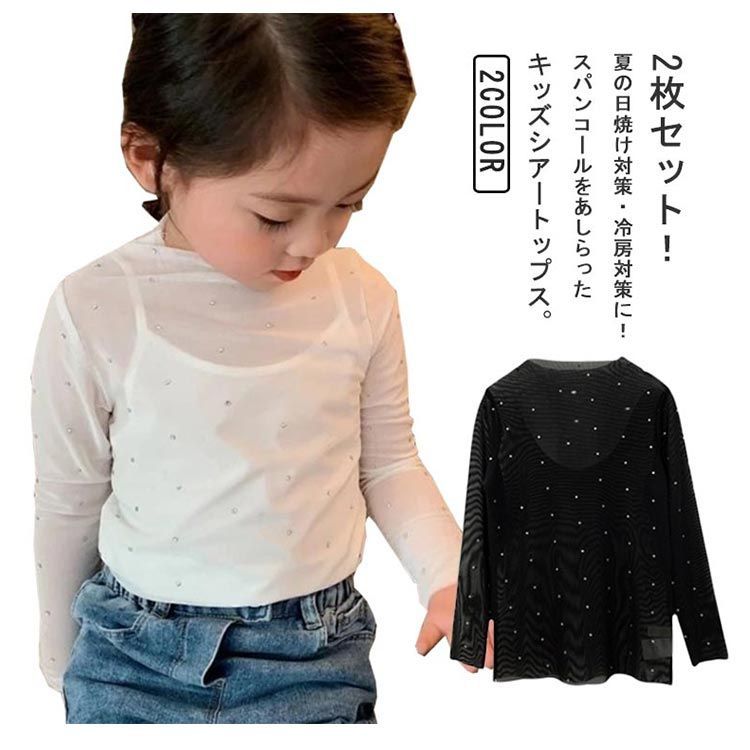 2枚セット!夏の日焼け対策・冷房対策に!スパンコールをあしらったキッズシアートップス。
